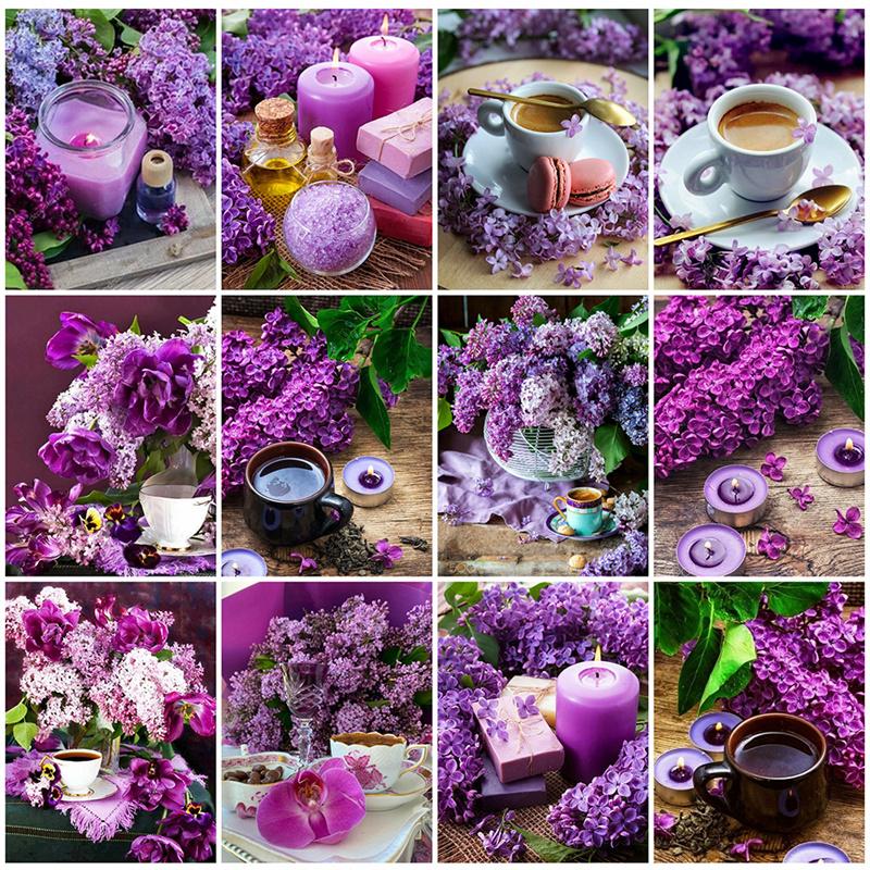 5D DIY Алмазная картина Фиолетовые цветы Сцена Алмазная вышивка Набор для вышивки крестом Полный горный хрусталь Мозаика Домашний декор