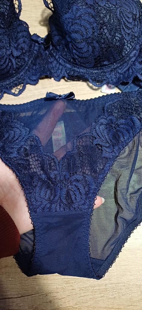 Качество хорошее, доставка очень быстрая - до С-Пб 1 мес. Трусики малы на ОБ 104см, бюстгальтер на ОГ 99 как раз.