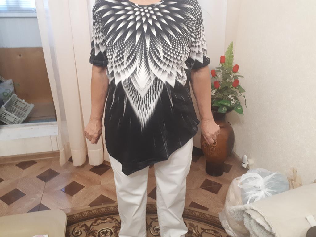 ТОВАР ПРИШЁЛ ПЕРЕКОШЕН, КАЧЕСТВО ШИТЬЯ ОСТАВЛЯЕТ ЖЕЛАТЬ ЛУЧШЕГО. Плохо сидит хочется середину подола вернуть к середине. Продавец прежде чем отправить товар, должен его внимательное рассмотреть и бракованный товар изымать, а потом отправлять замену. На заявленном фото у девушки, поскольку нога слегка согнута откос чуть ушел в сторону. Я же стою ровно и видно, что откос низа кофты пошит явно криво и не нужно мне писать, что это было изначально задумано, тем более в описании этого не было, что откос неровный