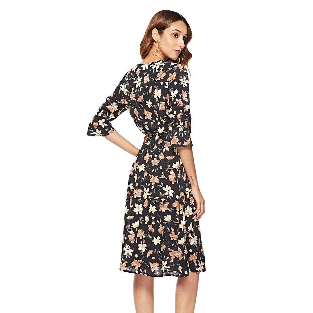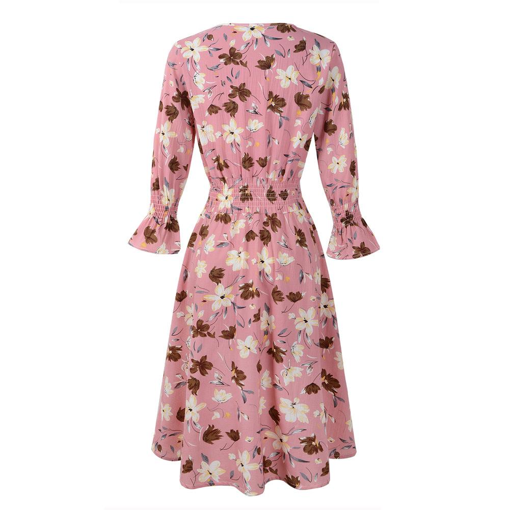 Женское шифоновое платье с расклешенным рукавом на весну и лето, V-образным вырезом и высокой талией, трапециевидным принтом, S-XXL
