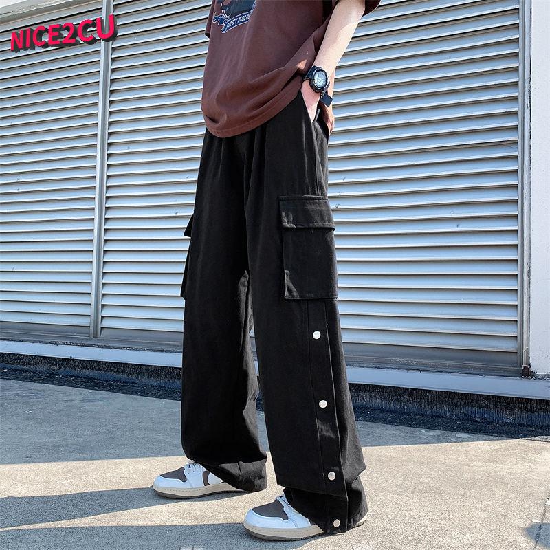 Лето 2023, новые трендовые мужские широкие брюки-карго, корейская уличная одежда, повседневные дизайнерские спортивные штаны большого размера с пуговицами для подростков — купить товар онлайн с бесплатной доставкой до всему миру!