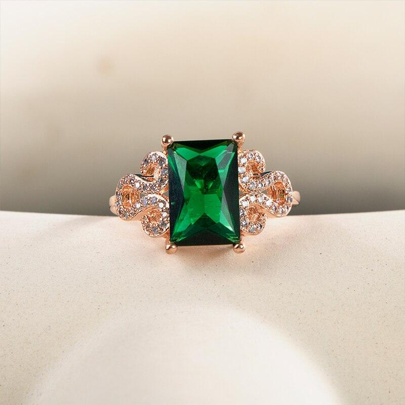 BELLA BOX Женское кольцо с зеленым камнем Cz, цвет розового золота, подарок на годовщину для очаровательных женских колец