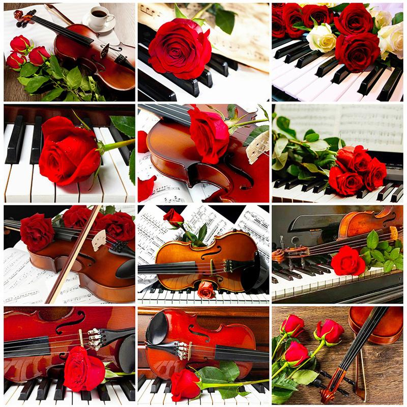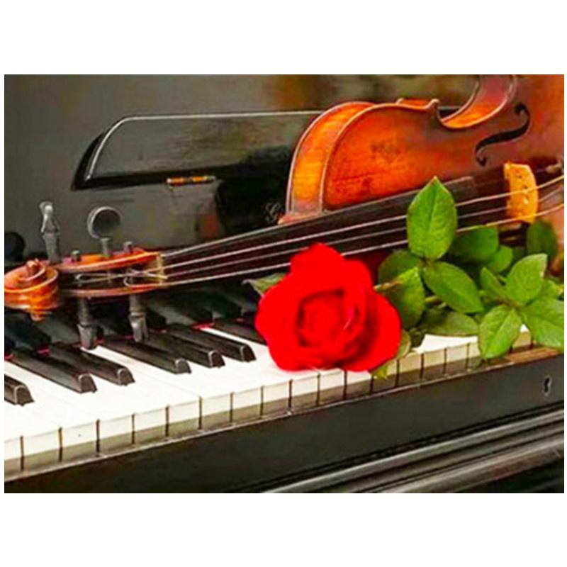 5D DIY Алмазная картина Фортепиано и розы Алмазная вышивка Набор для вышивки крестом Полный горный хрусталь Мозаика Домашний декор