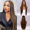 MERISIHAIR Женский модный длинный прямой парик красного вина с омбре без челки, кружевной передний парик, прямой парик из синтетического волокна для женщин