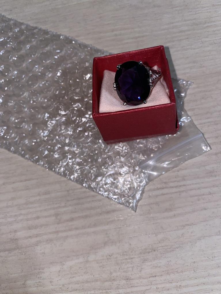 Замечательное кольцо с фиолетовым аметистом, шик и блеск просто, довольно большое, в подарочной коробке с салфеткой , спасибо 😉 Рекомендую!!!