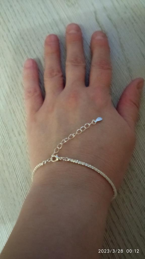 Цепочка красивая, сияет, очень хорошо смотрится и на руке и на ноге. Упакована была в пакет с пупыркой, но видимо немного пострадала при транспортировке, не такая гибкая, будто "колом" стоит, пришлось малость ее поразминать, стало лучше. Но в целом на общий вид не влияет, за такую цену вполне все неплохо.