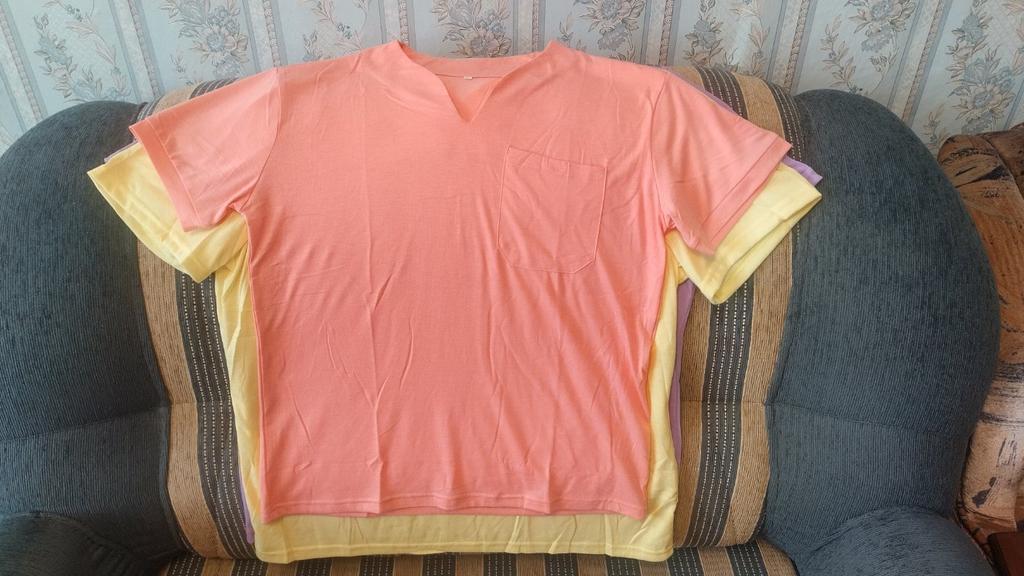 Заказывал три футболки : жёлтого, розового и фиолетового цветов размера XL. В результате пришли две футболки: жёлтая и фиолетовая размерами XL, а розовая на много меньшего размера!!! Хотя на вшитом на воротнике лейбле написано XL. В общем, написано одно, а на самом деле - другое!!! ОБИДНО!!! КИТАЙСКИМ ДРУЗЬЯМ ЗА ЭТО ВЫГОВОР!!! Фото прилагаю...