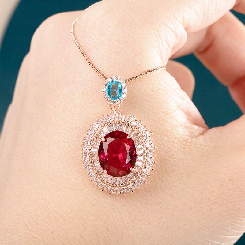 BELLA BOX Великолепный овальный красный кулон с цирконием, женское ожерелье для свадебной церемонии, вечеринки, полный ослепительный кубический циркон, женские украшения на шею