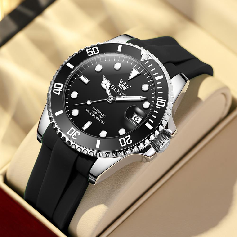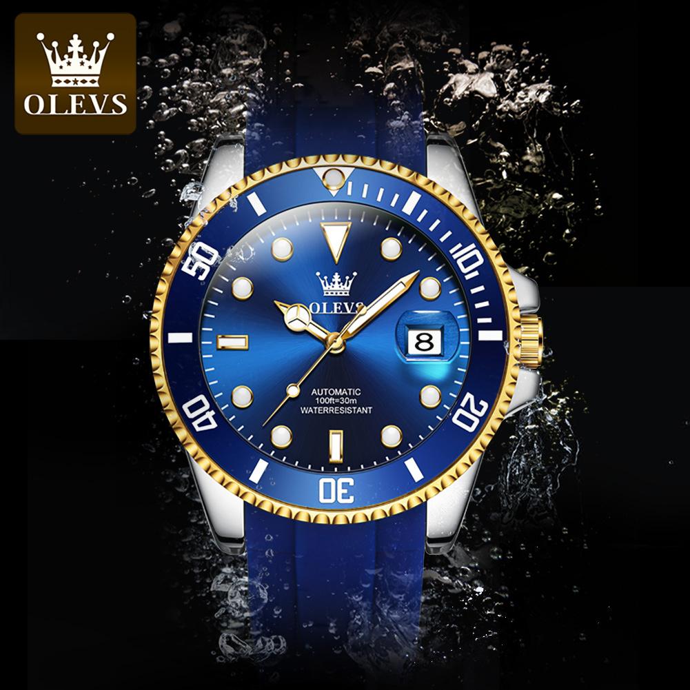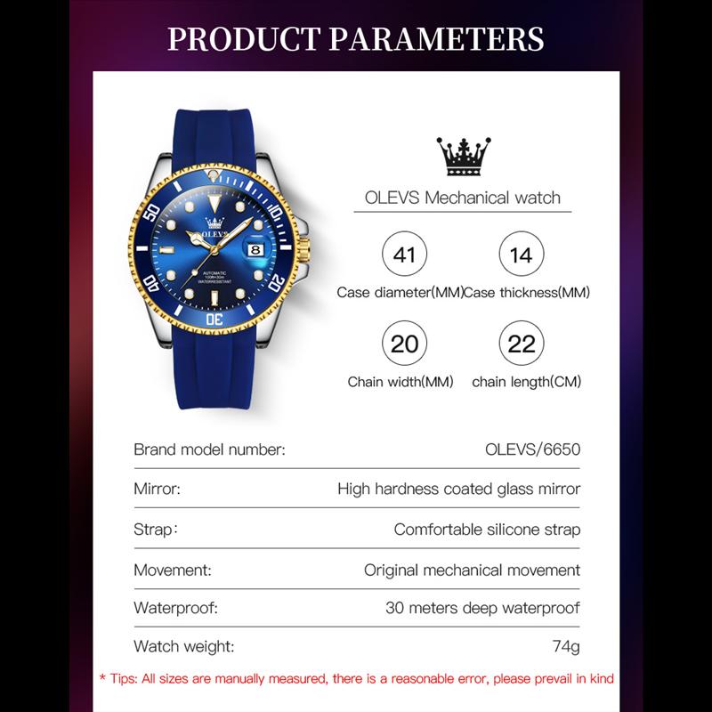 OLEVS 6650 с подарочной коробкой, роскошные зеленые водные призраки, автоматические механические часы, водонепроницаемые мужские часы, силиконовый ремешок