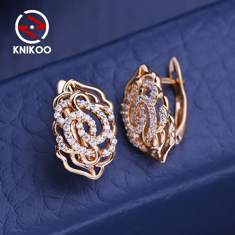 KNIKOO серьги-клипсы для женщин с кубическим цирконием, модные серьги-гвоздики с розами, ювелирные изделия для свадебной вечеринки, подарки — купить товар онлайн с бесплатной доставкой по всему миру!