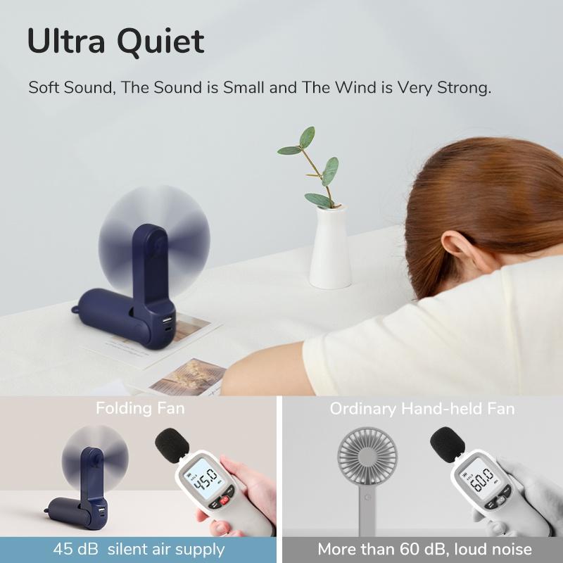 Мини-портативный вентилятор, прочный, бесшумный, складной, USB-аккумулятор, портативный маленький карманный вентилятор с блоком питания