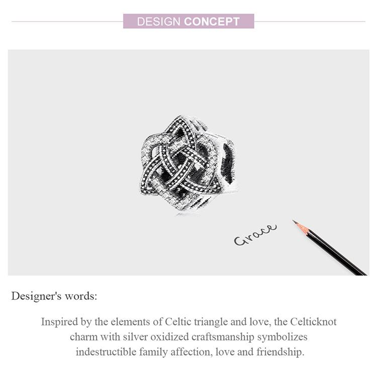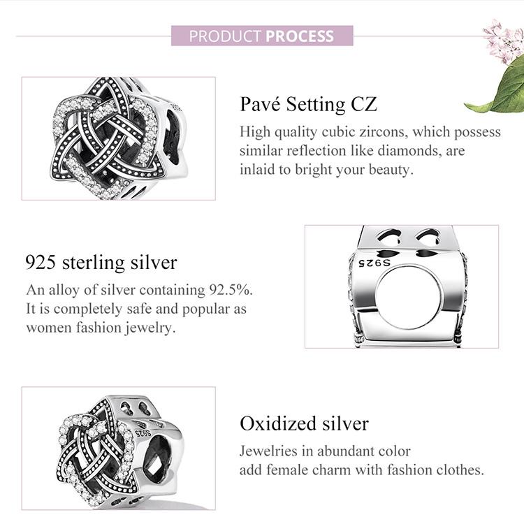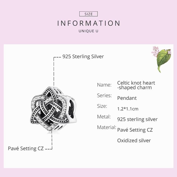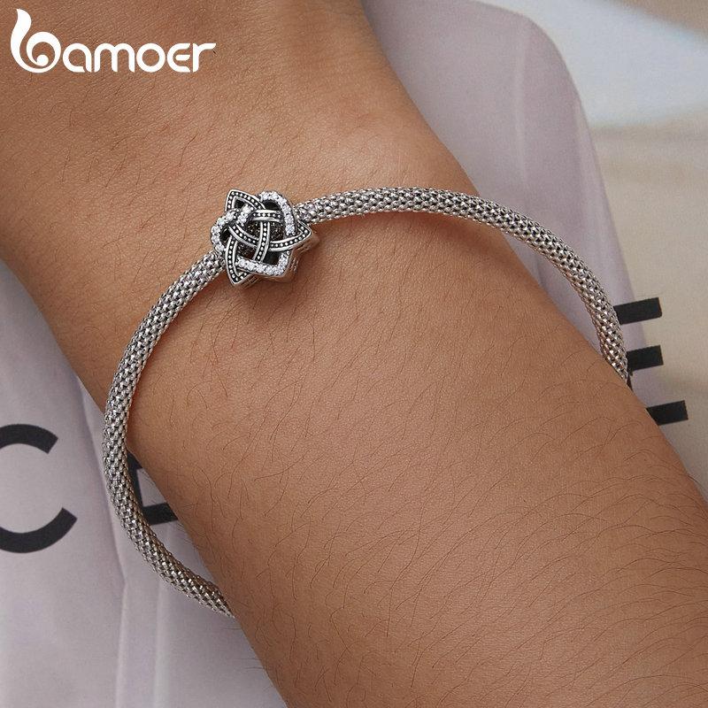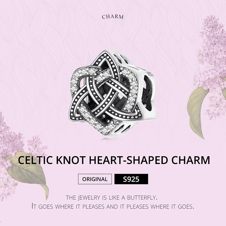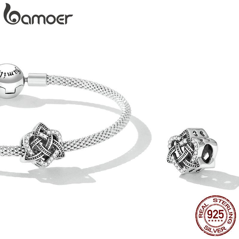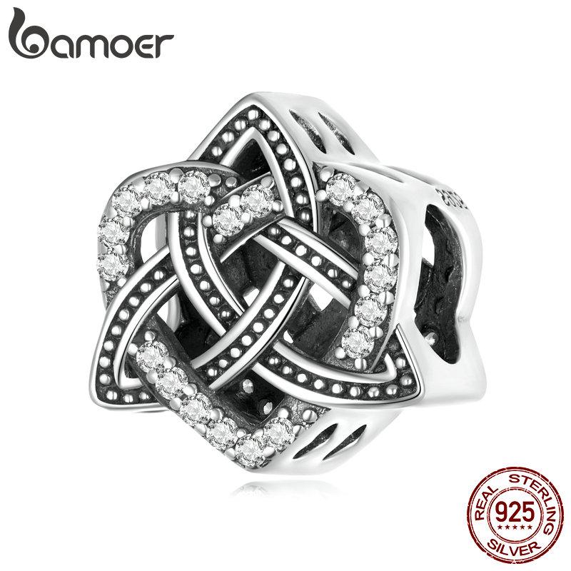BAMOER стерлингового серебра 925 пробы с кельтским узлом в форме сердца, подвеска, подходит для самостоятельного изготовления браслета и браслета, винтажные подвески, изящные ювелирные изделия