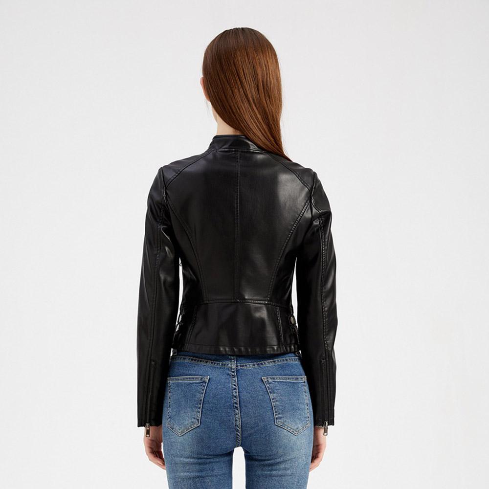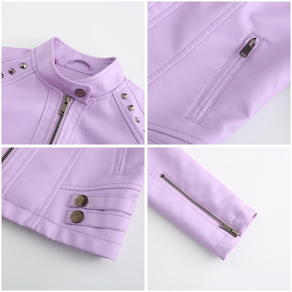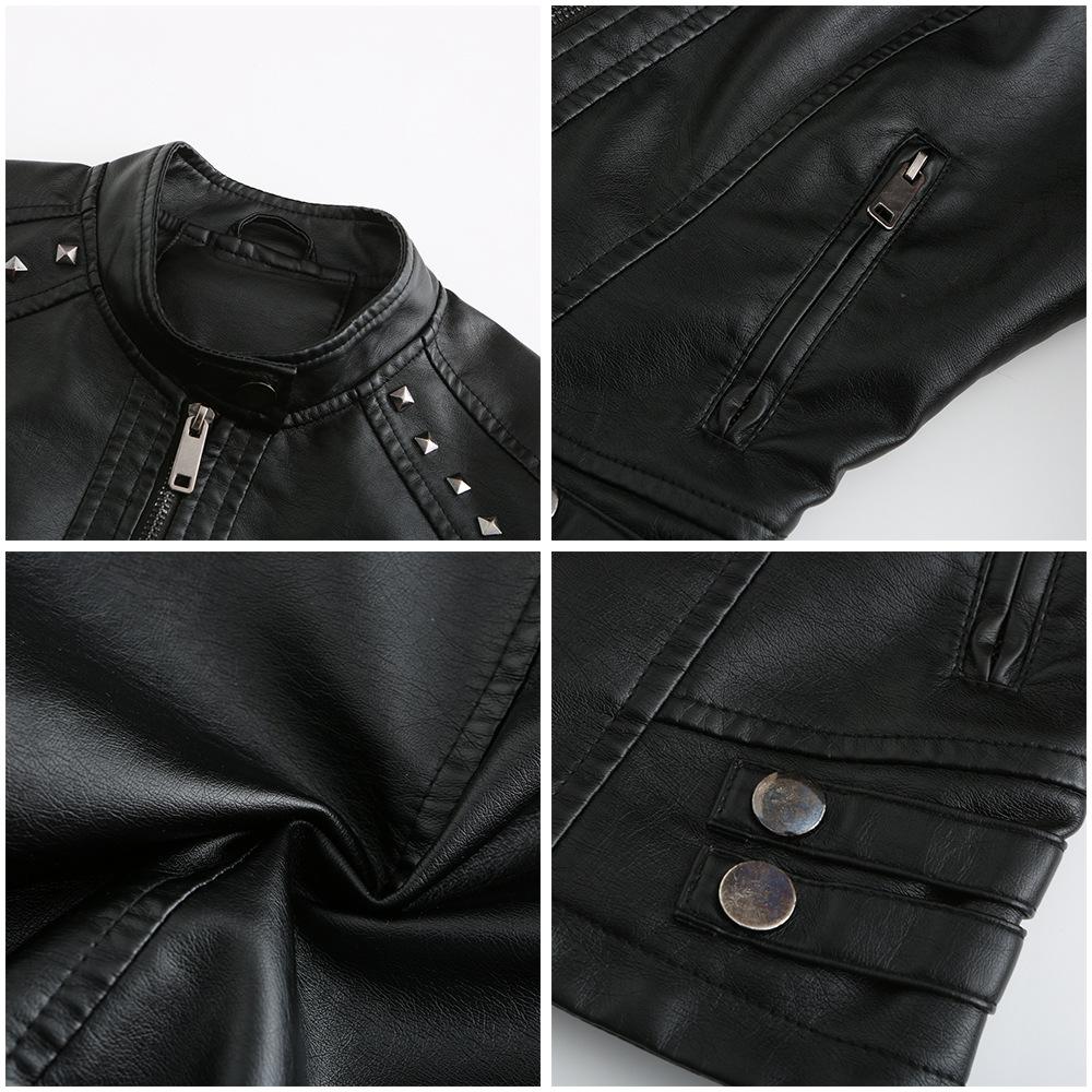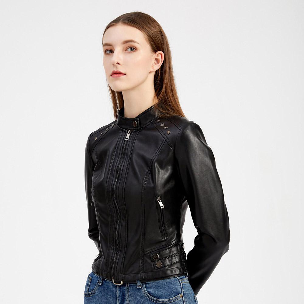 Женская весна-осень короткая заклепка-стойка с воротником-стойкой и длинным рукавом на молнии тонкая кожаная куртка из искусственной кожи S-3XL