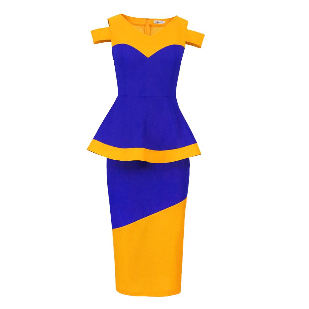 AOMEI Лоскутное платье, облегающее вечернее платье с открытыми плечами, цветных блоков, женское платье с баской, коротким рукавом и v-образным вырезом, элегантное африканское летнее офисное платье, большие размеры