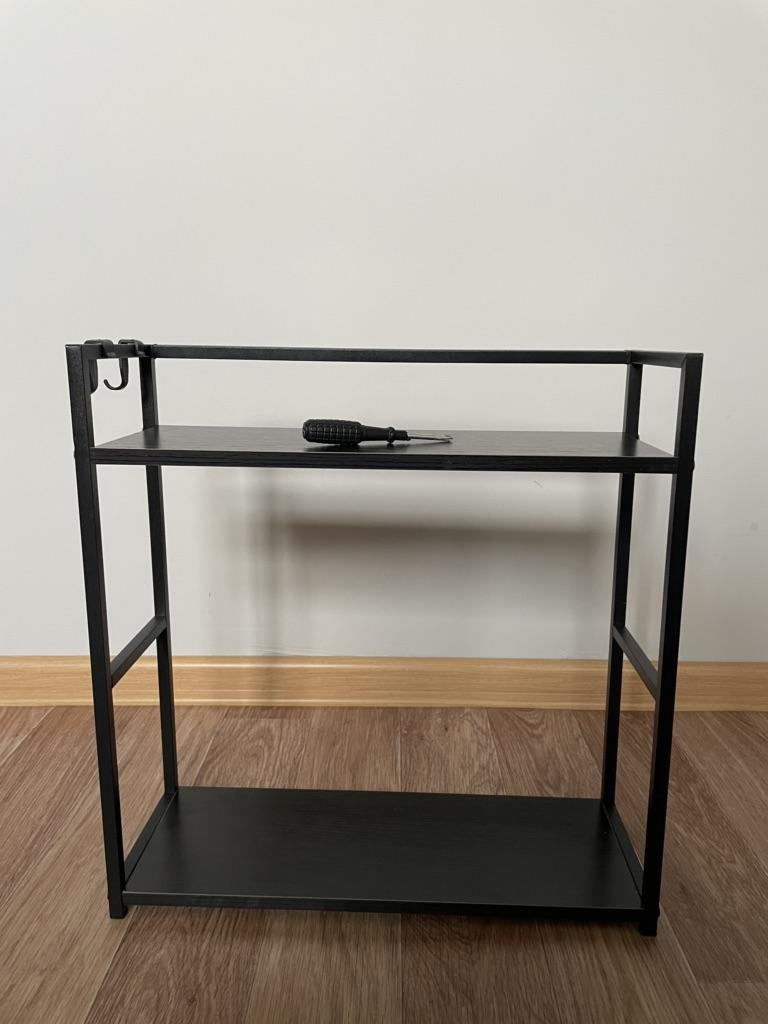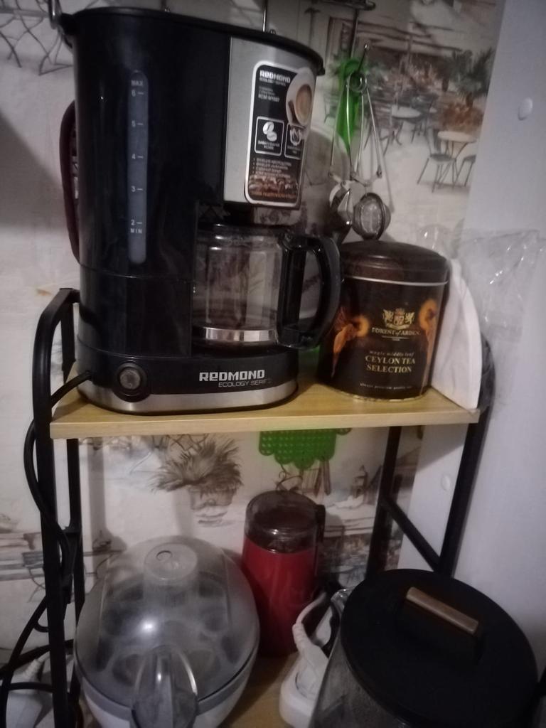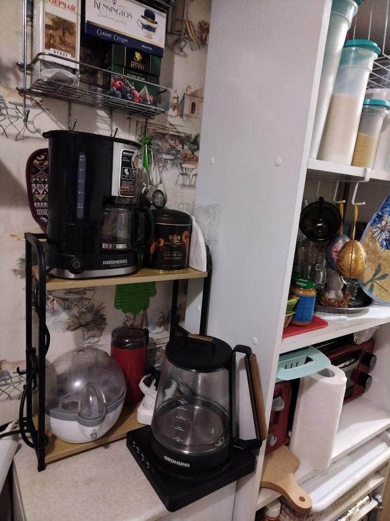 Доставка за месяц пришла, упаковано хорошо, всё было в целости и сохранности в сборной посылке. Хороший маленький стеллаж, мне пригодился для экономии места на столешнице маленького шкафа, где у меня теперь отлично уживаются вместе и чайник, и кофеварка и яйцеварка и даже баночка с чаем или кофе. Выполнен стеллаж очень аккуратно и легко собирается.