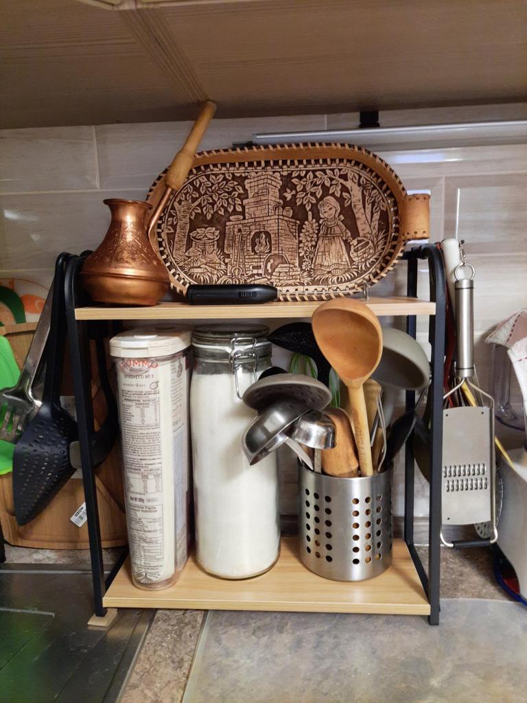 Очень ждала эту полочку. Хотела изменить немного дизайн моей кухни, получилось. Очень понравилась. Упакована хорошо, доставка меньше чем за месяц. Спасибо производителю и джум. Очень бы хотелось ещё дополнительные 2 крючка на боковые рамочки полки.