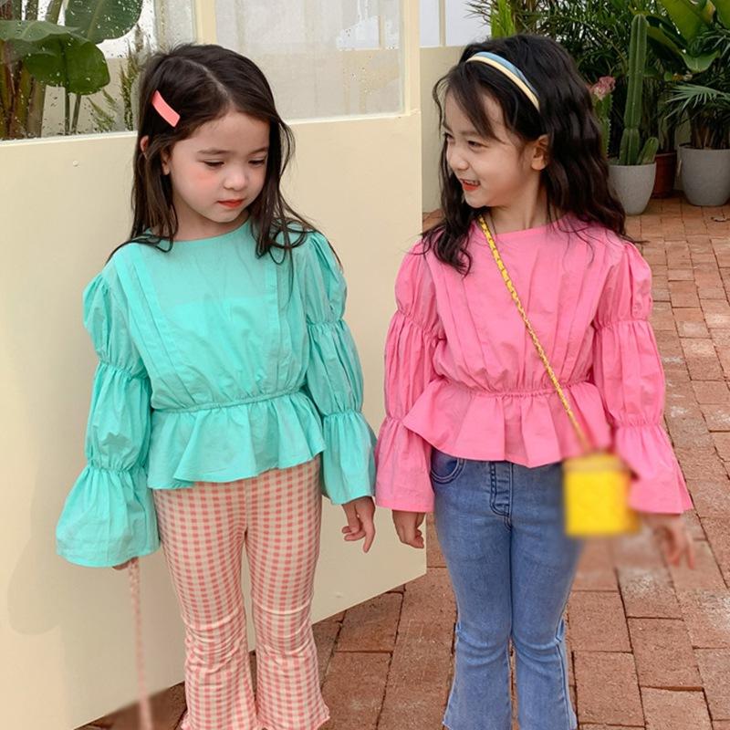 Детская рубашка с пузырьковыми рукавами для девочек, тонкая кукольная рубашка, темпераментные корейские блузки