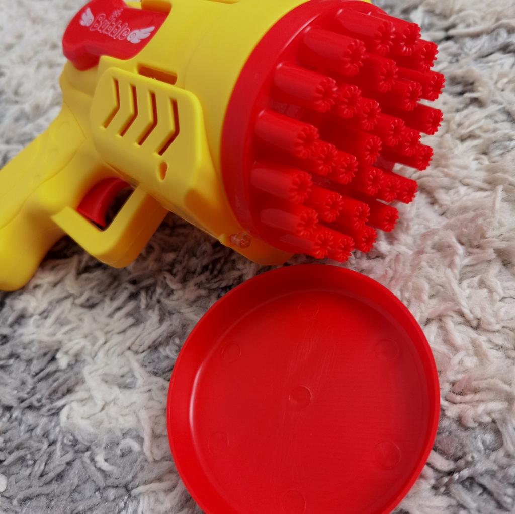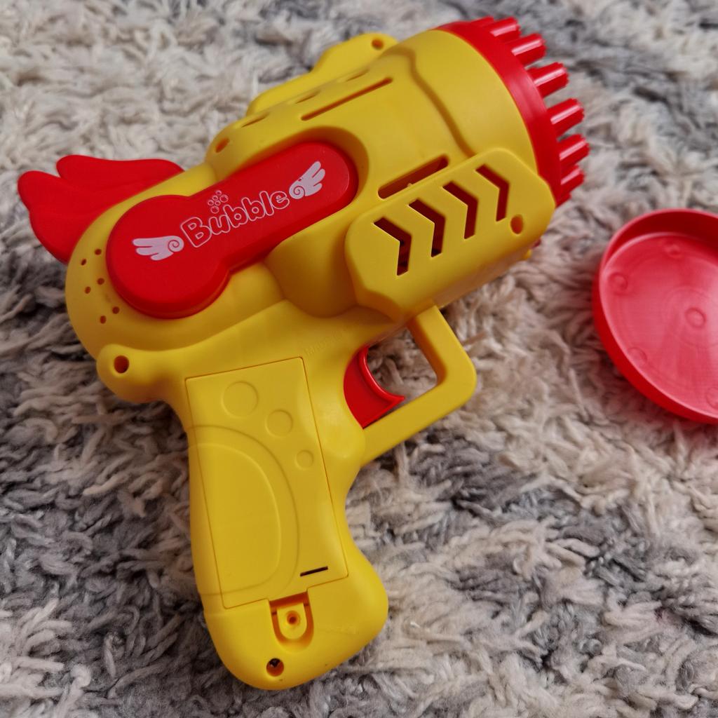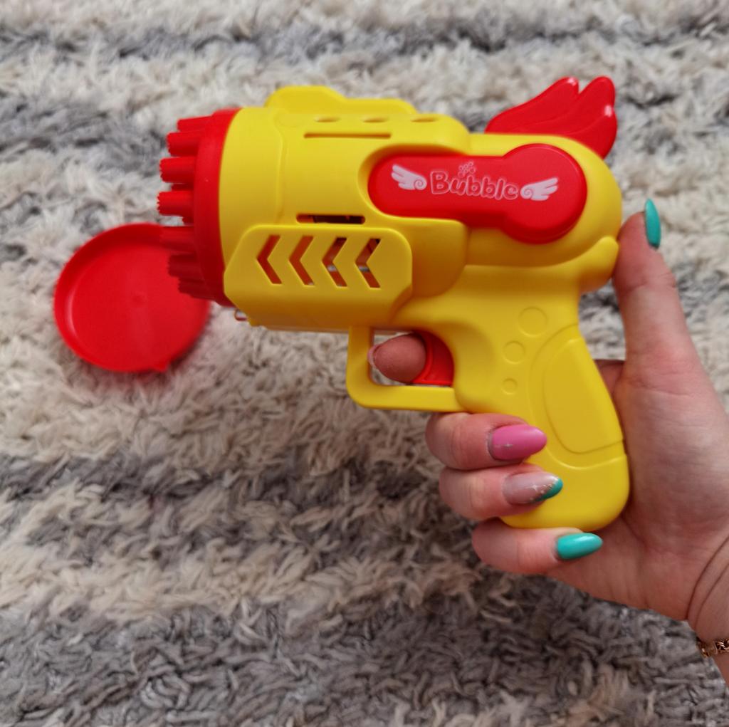 Пистолет для мыльных пузырей✨Видеообзор 🎥 Купили Саше и Глебу пистолеты такие ещё весной, а все обзор написать не могу (на дино-бластер пост есть, июньский). Исправляюсь. Мало ли, кто для дома закажет или заранее к лету. ☀ Начну, пожалуй, с того, что пистолет по сей день целый, единственное, батарейки меняли уже далеко ни один раз,но это уже мелочи. 😉 Приходит в пакетике, но цел и невредим. В комплекте сама пушка и чашка под мыльную основу. 🌼 Внешне полностью совпадает с изображениями продавца. Сделан из пластика. Количество отверстий под пузыри 29. По размеру не большой, но и не маленький-самое тяжёлое в нем это батарейки(4 пальчиковые - в комплект не входят). 😊 Суть работы бластера в том, что сторону с отверстиями мокаешь в чашу с мыльной жидкостью, а после нажимаешь на курок и куча маленьких мыльных пузырей вылетает из 29 отверстий. Детям безумно нравится! 🤩 Что касаемо нюансов, то мне не понравилось то, что нет такого множества пузырей, как на фото продавца. Оно в раза 2-3 меньше. Благо, детям и того хватило. ☝️ Внешне без претензий, а по функционалу и количеству пузырей ожидала большего, но 5 звёзд ставлю, ибо по качеству претензий нет вообще. 👌 P. S. Дети бегали во дворе весной после дождя, поэтому одежда соответствующая. Не обращаем внимание! 😉