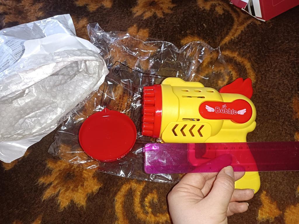 Посылка шла до Берлина 16 дней🚚🇩🇪 заказом довольны сын радуется🥳 В комплекте пистолет 🔫и тарелочка нужны 4 пальчиковые батарейки🔋АА, нужно будет сделать мыльный раствор🧼💦 в основном качество хорошее👍🏻 очень весело лампочка светится все норм💡 ⚠️если вы без батареек🔋⛔ попробуете нажать 👇🏻на кнопку что то протестировать или поиграть🤔 не получится так как без батареек она не нажимается🤷🏼♀️ Без паники все чики пуки просто нужно батарейки вставить🔋 и все будет шикарно💁🏼♀️💥 *Упаковано было в обычный пакетик плюс упаковка* Спасибо продавцу и всем кто участвовал 🤍