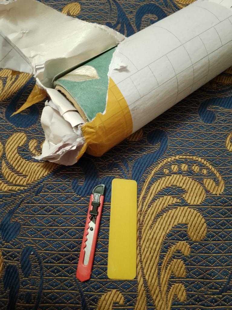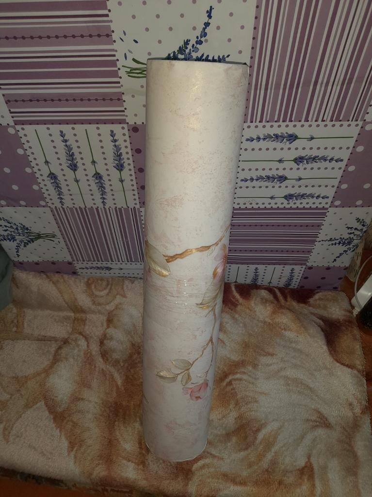 Самоклеющиеся обои, цвет которая, я заказала, очень красивый обой, цвет зелёный, ещё положили Шпатель и канцелярский ножик, видимо, чтоб отрезать, Обой в тубе, хорошо упакован, без повреждений, спасибо продавцу