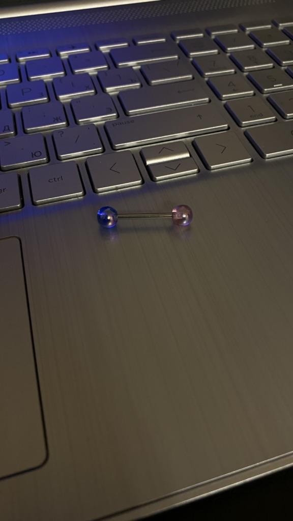 Очень хрупкая вещь. Это переливание на шариках - пленка . Пока закручивала шарик ,уронила его один раз и откололся кусочек от шарика во время удара ((( Дополняю : пирсинг сломался спустя 1,5 недели прямо у меня во рту!!! Синий шарик сломался пополам ( Впервые такое вижу,хотя язык проколот уже 12 лет