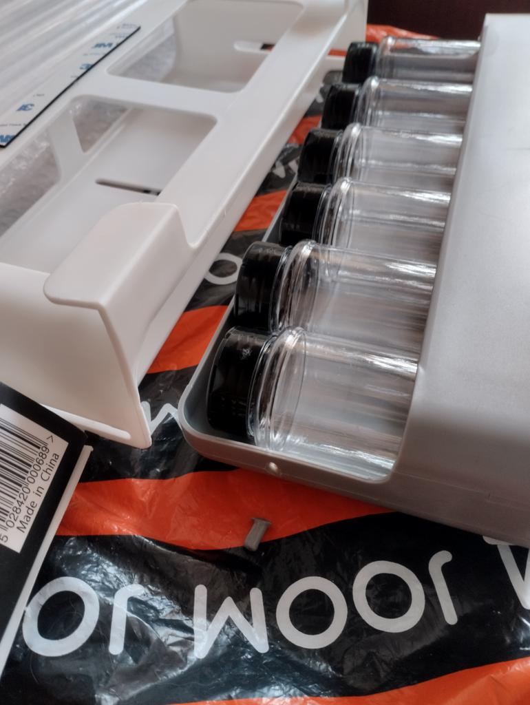 Задумка была отличная. Товар был хорошо и тщательно упакован, но справа оказался отломан усик, на котором должен держаться контейнер со специями. Самой отломанной детальки в упаковке не было, значит его уже паковали и отправляли бракованный.