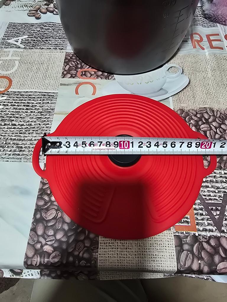 Продавец не совсем корректно описал свой товар о силиконовой крышке для кастрюли. Он пишет размеры: 20,4х24см. Мы поняли, что диаметр крышки по наружному диаметру составляет 24см, а оказывается, что это размер включая 'ушек' (ручки' по бокам крышки. Я считаю, что Продавец обманщик и не советую покупать эти крышки. Буду открывать спор т.к. Продавец ввёл в заблуждение Покупателей. См. Видео отзыв о красной крышке...