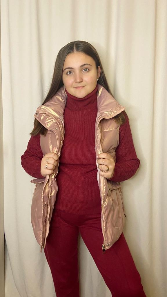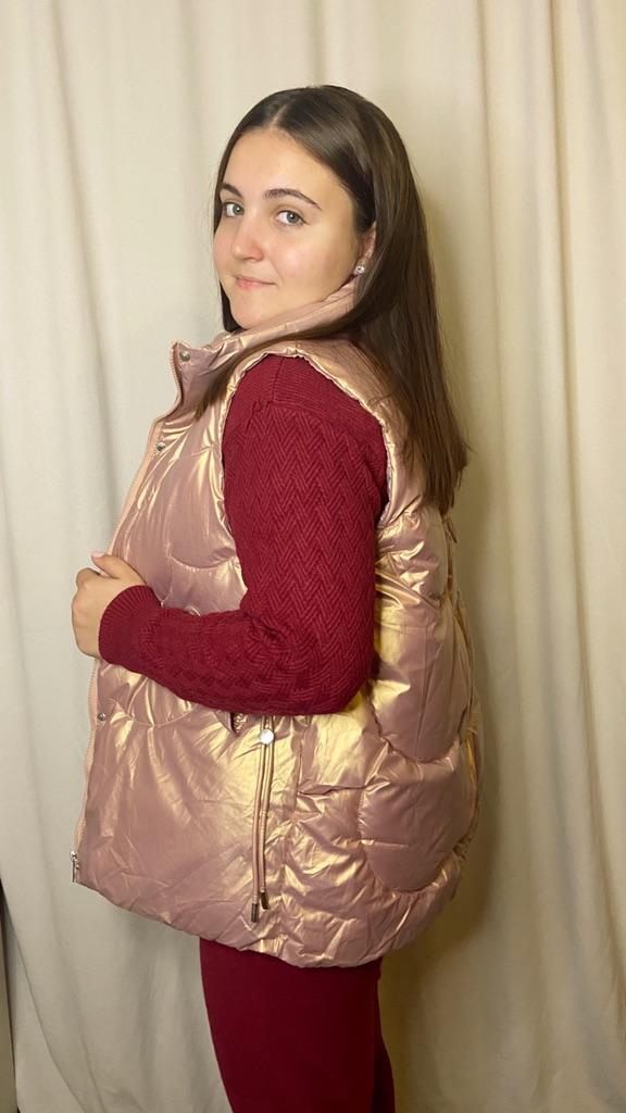 @anaisjoom - мой Телеграмм-канал. Присоединяйтесь, друзья, буду очень рада🥰🌸 Скажу вам одно, жилетка просто нереальная. Цвет шикарный😍😍😍Освежает образ. Плюс ко всему этот предмет гардероба является трендом наступающих сезонов. 🔸У продавца представлены размеры от M до 2XL. На мне тот, что поменьше. Мои параметры: ОГ - 82 см ОТ - 63 см ОБ - 86 см Длина рукава - 45 см Ширина плеч - 37 см Рост 165 см 🔸Замеры жилетки M ОГ - 100 см ОТ - 96 см ОБ - 104 см 🔸Материал просто наиприятнейший, такой классный😍 Есть подклад другого не менее крутого оттенка. Вся фурнитура супер качественная. Замочки, заклёпки, декорация - все имеется. 🔸Жилетка идёт под горло. Я думала сначала, что не очень удобно будет, но, к счастью, я ошиблась. Все супер. 🔸Жилетка лёгкая. Наполнена синтепоном. Очень теплая, прям супер теплая. 🔸Пошив аккуратный. К Hii Bloom нет никаких претензий) 🔸Такая вещь сочетается практически с чем угодно, что очень удобно) Я очень благодарна продавцу ❤️ и Joom ❤️ за такую прекрасную вещь. И вам от всего сердца рекомендую эту красоту.