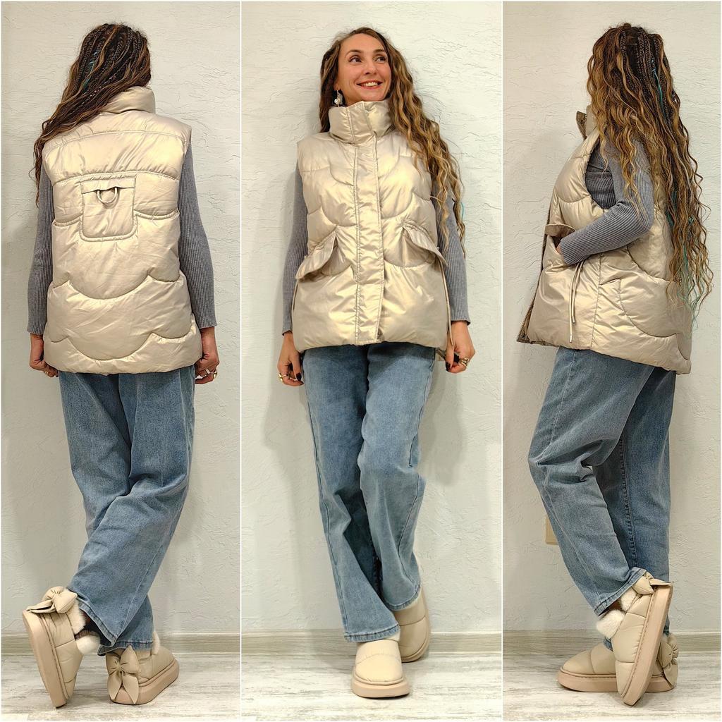 Дутая жилетка цвет шампанского 🥂🍾 Всем солнечный приветик 👋😉 Сколько раз эта жилетка уже у меня мелькала в обзорах и каждый раз она привлекает внимание девчонок и Вы просите ссылку на неё, а я только добралась до обзора на такой классный товар 😃 Девочки, тут и качество и цвет всё очень клёво 😍 Заказала размер XXL и жилетка на мне села очень свободно Подойдёт на бо́льшие параметры Мои параметры: 🎗 рост 160см 🎗 вес 54кг 🎗 длина плеч 40см 🎗 объём груди 93см (75D) 🎗 объём талии 63см 🎗 объём бёдер 93см. Качество: 🥂 ткань с пропиткой от дождя 🍾 в меру шуршит 🥂 цвет красиво переливается 🍾 внутри синтепон 🥂 жилет фигурно стёганный 🍾 воротник стойка 🥂 застёгивается на пластиковую бегунок металлический 🍾 молния закрывается клапаном с металлическими кнопками 🥂 пройма широкая 🍾 есть привычный синтетический подклад 🥂 спереди 2 накладных кармана, которые закрываются клапанами 🍾 у карманов есть декор в виде имитации утяжки 🥂 сзади ещё один декор в виде петли 🍾 швы ровные 🥂 качество отличное. Точные замеры жилетки в размере XXL: 📏 ОГ - 118см 📏 ОТ - 122см 📏 объём низа жилетки - 124см 📏 плечи - 43см 📏 длина жилетки от плеча - 68см 📏 объём проймы - 56см. Я жилеткой довольна очень-очень и рекомендую её всеми ручками 🤗💞 Спасибо, продавцу и Джуму 😘 Чмок-чмок-чмок, всех кто со мной на Джуме 😘 Желаю удачных покупок и весны в душе ❤️ До скорого 🙌😊 Песня во втором видео: Aktive «Nobody Like You» 🎶💃🎶