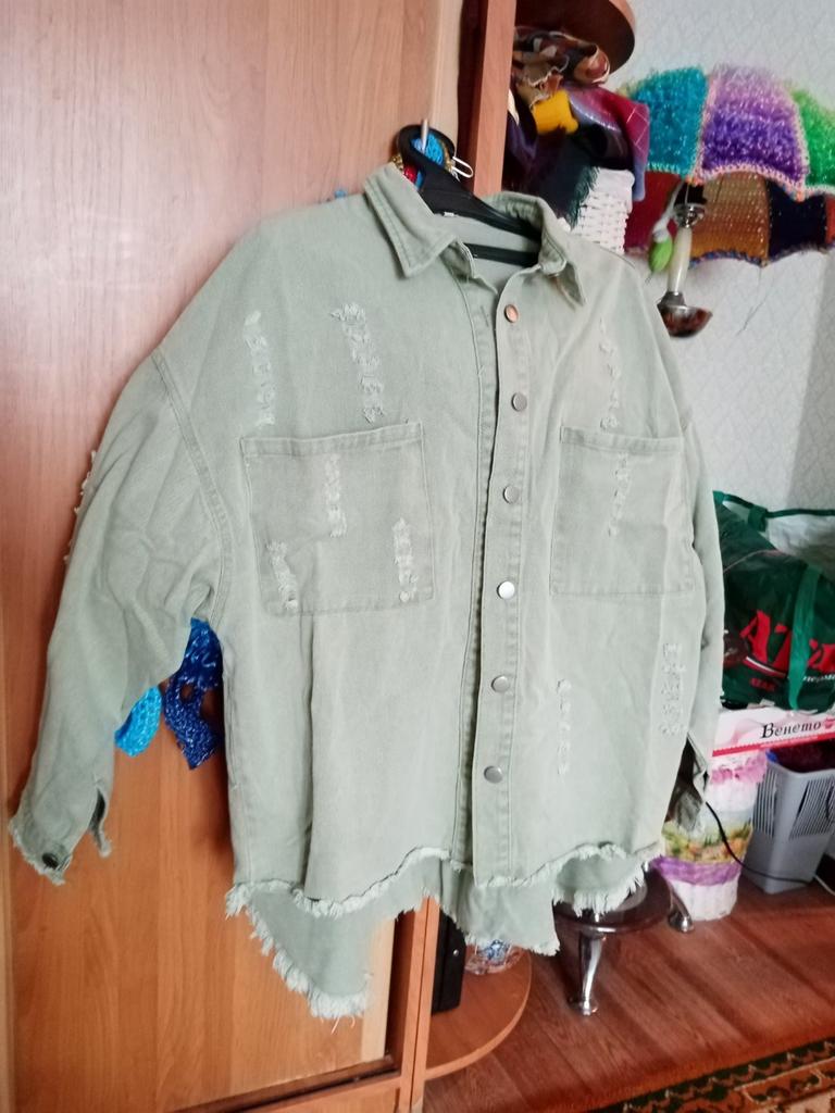 Ткань-хорошая джинса. Грубая по виду, нить объемная, но мягкая. Серьезный оверсайз. Карманы оочень велики, поставила кнопки, чтоб прижать из к телу, иначе визуально очень утяжеляют грудь. Размер обсуждать бесполезно, бирка срезана. Не то, что нет, а именно срезана👿. Мне-то такой оверсайз отлично, но это непорядочно, кот в мешке. То есть, мне зашло, только цвет расстроил-розовый на фото продавца гораздо утонченее, в реале грубее. Заказывала L. Замер того не знаю чего ,что приехало) грудь 130, длина переда 68, длина спины 80