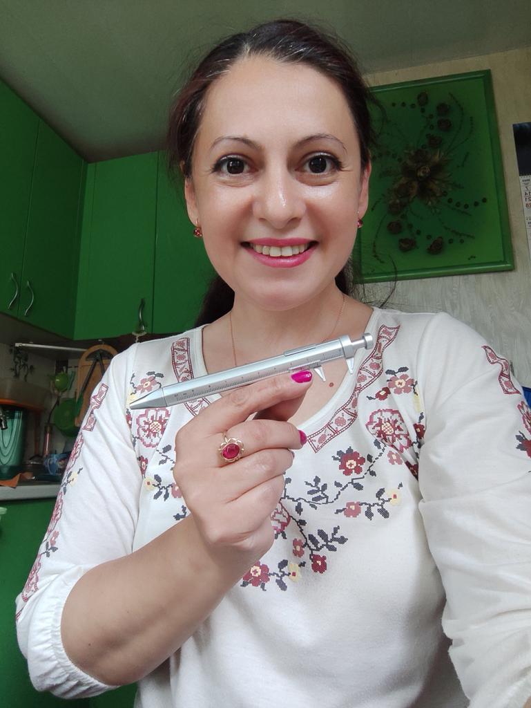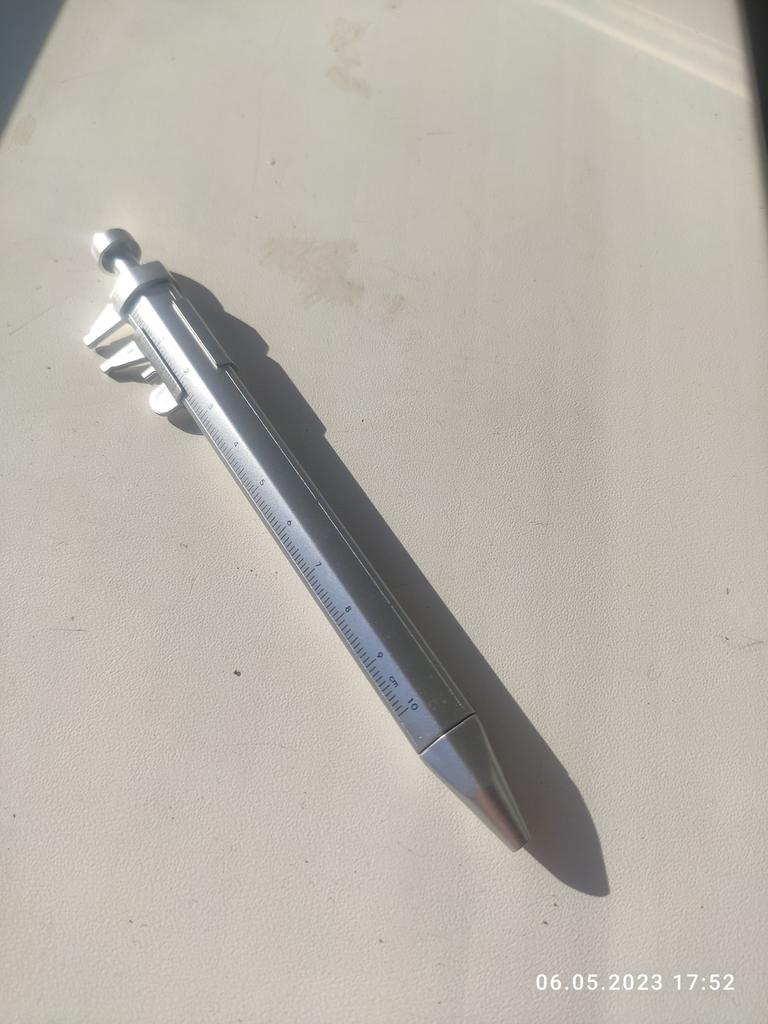 Ручка-штангенциркуль🖊️📏 Заказала на подарок своей коллеге - начальнику производства. В работе ей порой приходится проверять ту или иную фурнитуру для сумочек: ручкодержатели, хольнитены и прочие прибамбасы. Она обычно проводит измерения длинной металлический линейкой закройщика🤦, а так как я сижу рядом, то всё время боюсь, что она мне в глаз зарядит этой линейкой. 🧐🫣😆 Вот для её удобства и моего спокойствия и заказала данную ручку. И писать ею удобно, и оперативно измерить что-то некрупное. 👌😄 🖋️ Ручка выполнена в серебряном цвете, изготовлена из пластика, лёгкая, стержень шариковый, синего цвета. Пишет хорошо, мягко. (многоразовая; смена стержня - возле "носика"). 🖋️ Имеются две шкалы измерения: Одна на самой ручке, равна 10см, вторая на подвижной части, равная 1.5 см (на ней деления от 0 до 3). 🖋️ Самое интересное, что деления идут с одной стороны, при этом имея отступ в 2 миллиметра. Но в деле ручка оказалась "рабочей" 👏 Проверено! 🖋️ Доставка быстрая, в течение 20 дней в Минск, Беларусь. Положили в почтовый ящик. 🖋️ Упакована ручка в индивидуальный пакет и почтовый с пупырышками. Подарок моей коллеге понравился!🖋️😁 Рекомендую данный товар! Спасибо продавцу и Джуму♥️🫶