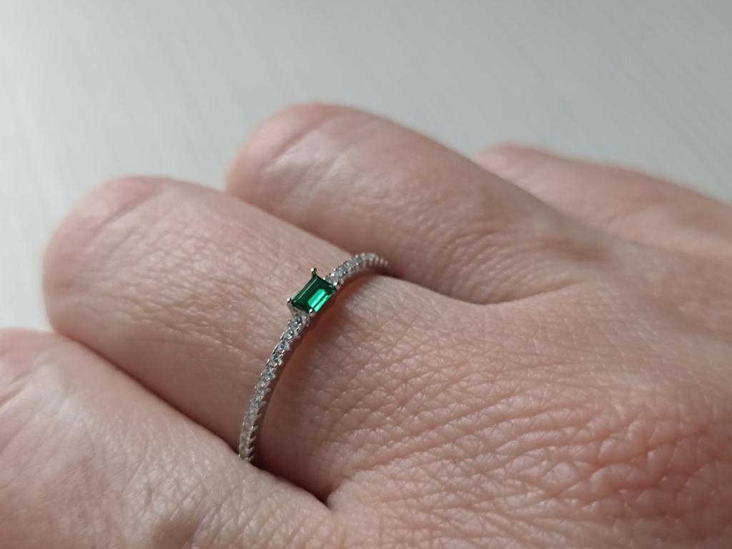 Купила сразу три колечка у одного продавца, минималистические, скромные, изящные, идеальный вариант для юных девушек. Очень тонкие, этим и напоминают ювелирное изделие, а не бижутерию. Можно носить сразу и 2 и 3, купила т. к. за покупку от 3 штук была скидка 30 %. Всегда подходил размер 7 на мой 17 российский размер, эти колечки чуть меньше , надела, а снимать только с мылом. Рекомендую брать на размер больше вашего обычного. Одно, белое, с поперечной установкой камушка, два других с зелёным и фиолетовым вдоль колечка. Очень тщательно смотрела, но пробу 925 так и не увидела ни внутри, ни снаружи колечек. С зелёной вставкой смотрится интереснее, камушек яркого, изумрудного цвета, фиолетовый очень бледный, почти белый. В целом, промофото продавца полностью соответствуют. Жаль только, что не упаковал хотя-бы в пластиковый махонький контейнер, как у других продавцов, пришли в огромном пакете с логотипом Джум, который сначала показался мне совсем пустым... К покупке рекомендую.