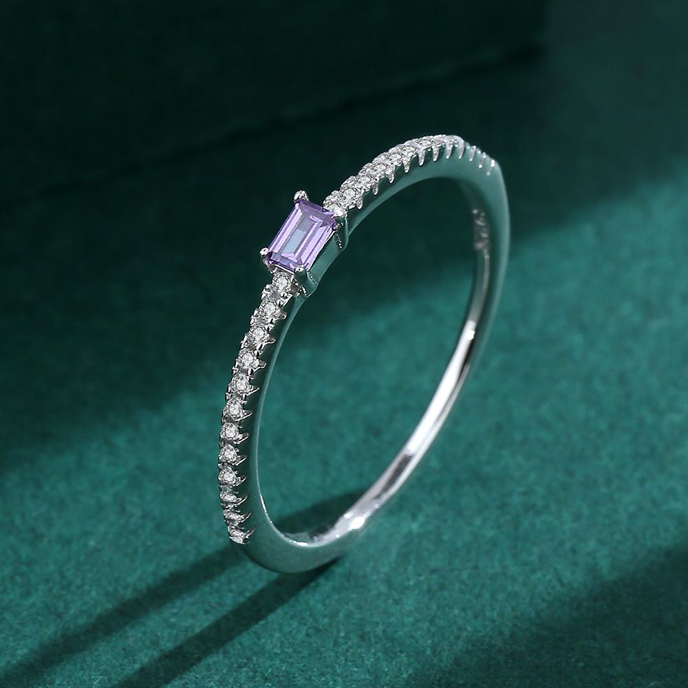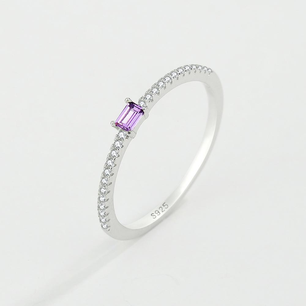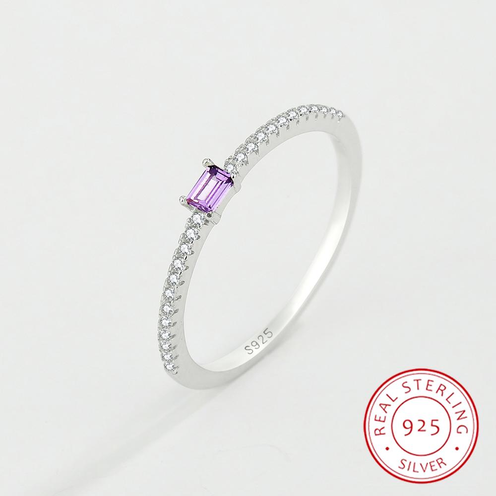 Простое кольцо с одним рядом бриллиантов с аметистом для женщин, натуральное серебро S925 с цирконом, обручальное кольцо, подарок на День святого Валентина, ювелирное изделие