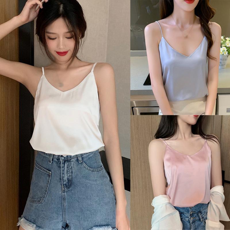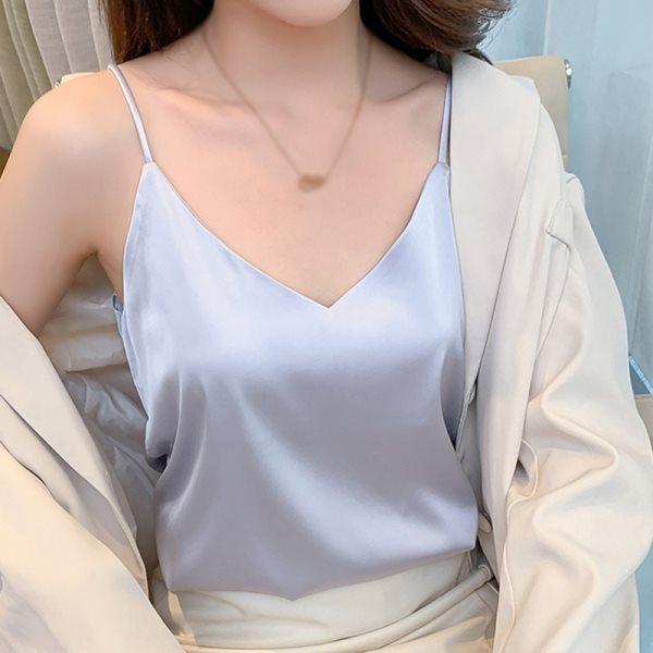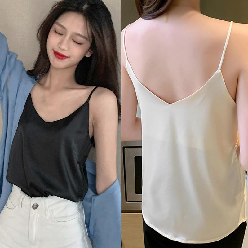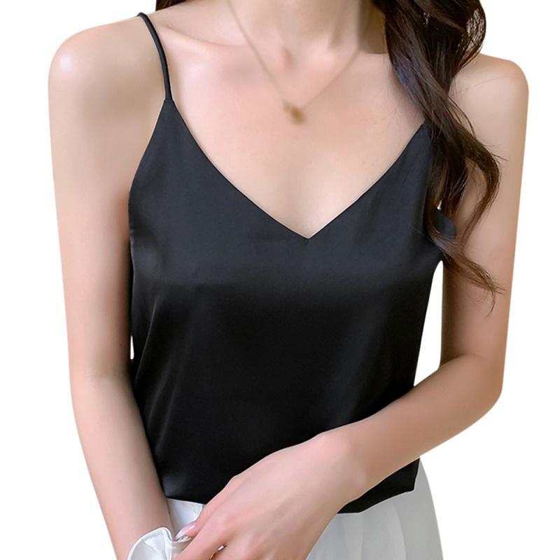 1. Лето, новый стиль, без рукавов, корейская версия, однотонный цвет, тонкий крой, женская одежда, ледяной шелк, повседневный, V-образный вырез, подтяжки, универсальный, мягкий, легкий, дышащий общий жилет.