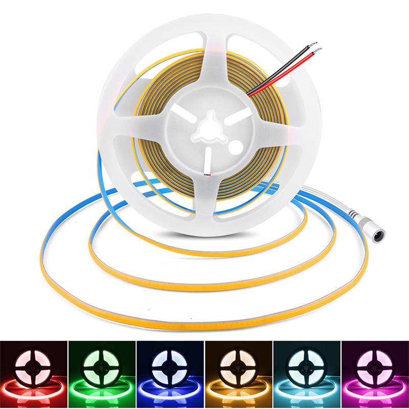 Супертонкая светодиодная лента COB 5 мм, 320 светодиодов/м, гибкая светодиодная лента высокой плотности, 12 В постоянного тока, лента для декора автомобильного шкафа, освещение с регулируемой яркостью