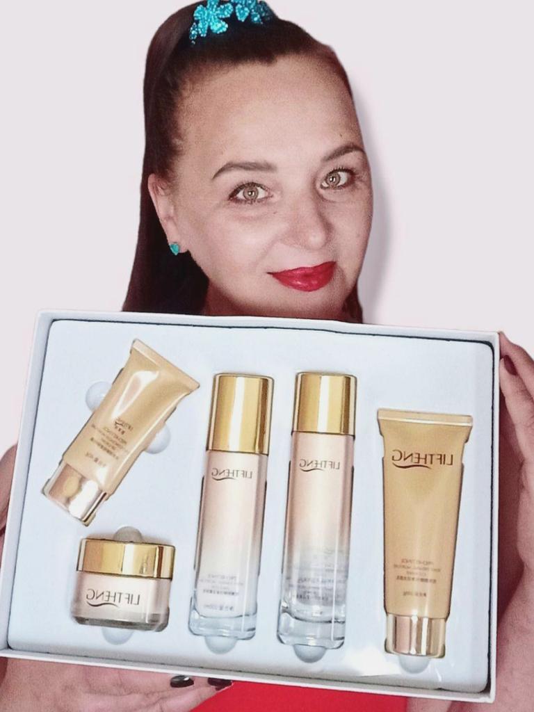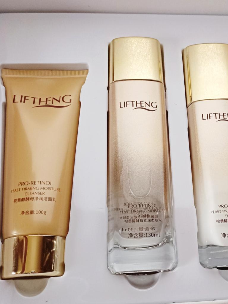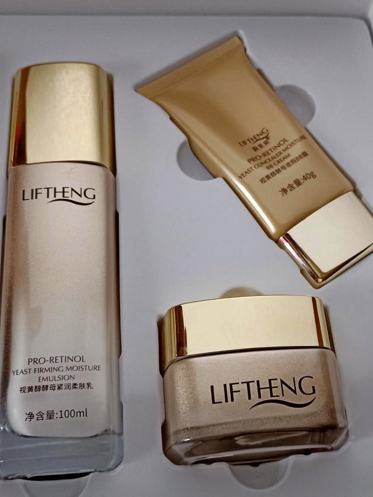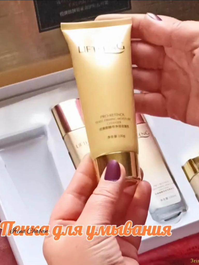 Потрясающий набор LIFTHENG pro-retinol для ухода за кожей. 🎥👉 ✨✨✨Пришел в отличнейшом состоянии. Коробка золотая, дорого-богато😀, довольно тяжелая. Бутылочки из стекла, да еще и объем шикарный, вот и вес. ✨✨✨Все составляющие набора в ячейках, на пластиковой подложке. ✨✨✨Срок годности 3 года А теперь о комплектации:👍 1. 🌺Пенка для умывания🌺 100гр. 2. 🌺Тонер. 🌺 130 мл👍👍 3. 🌺Эмульсия.🌺 100 мл. 4.🌺Крем для лица🌺 50гр. 5.🌺ВВ крем🌺 40гр. Все , что нужно нам утром😀в одном наборе. В составе ретинол и дрожжи. ☝️Ретинол – это форма витамина А, которую отличает более высокая биодоступность. Молекулы ретинола очень малы, благодаря чему могут проникать в глубокие слои кожи ☝️Дрожжи. Полезные свойства этих одноклеточных грибов используются для лечения проблем эпидермиса, его омоложения. 🌺Набор просто отличный🌺 Такому подарку будет рада любая женщина 100%🔥