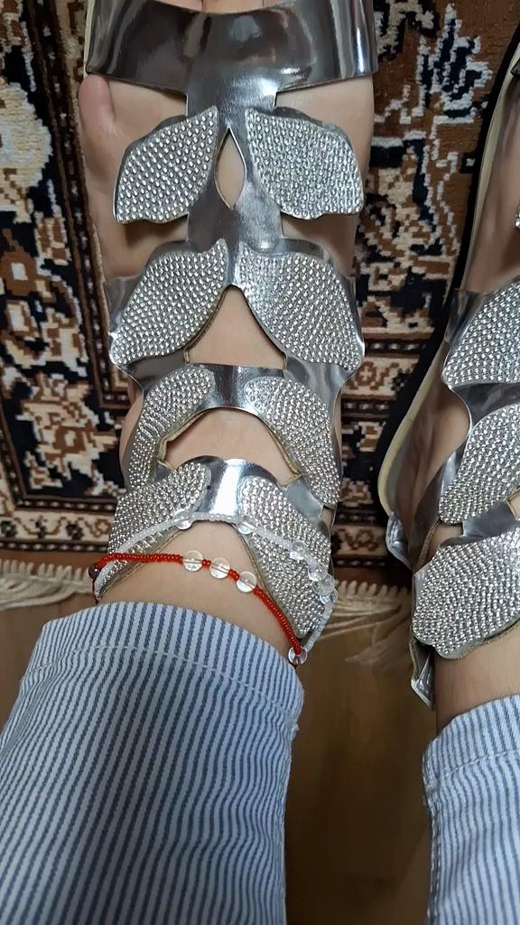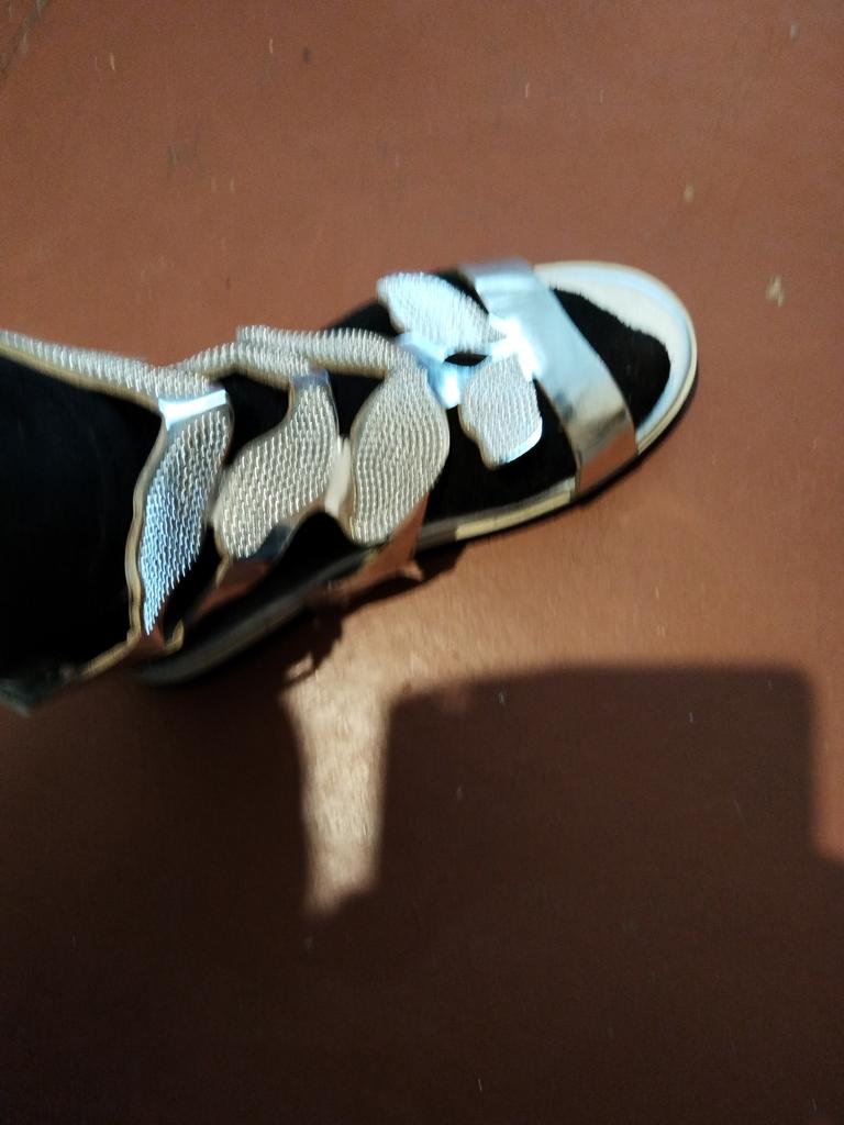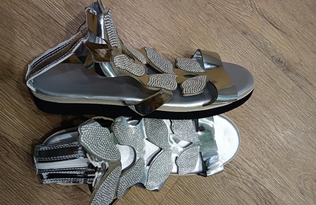 Доставка месяц, упаковано хорошо. На этом положительные моменты товара для меня закончились, ибо заказывала без фото в комментариях, их просто не было. Качество ужасное - почти нигде не прошито, бежевая вставка между серебром и чёрным слоем подошвы должна быть обернута в серебряный материал. Вид напоминает сланцы с серебром топорной работы. На тонкой ноге смотрится ещё хуже, торчит сверху всё. Задумка у товара хорошая, ожидание на фото продавца очень даже красивое, но в реальности просто ужасно. Покупка - полный провал, зря только ждала эти сандалии. Стоимость мне возместили, порезала их по просьбе службы поддержки, далее просто выкинула. Никому не рекомендую, можно обувь покупать по куче комментариев с фото, но в обычном магазине всё равно удобнее будет приобретать.