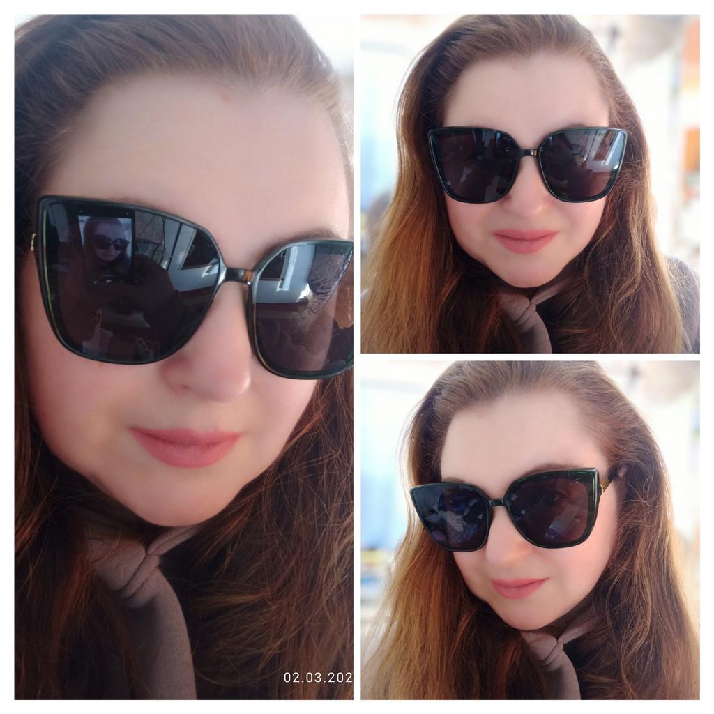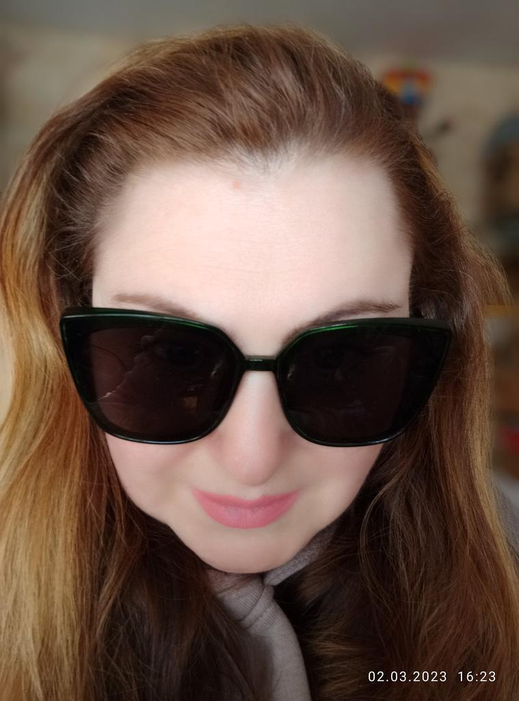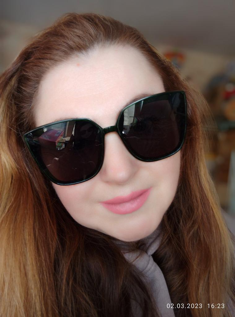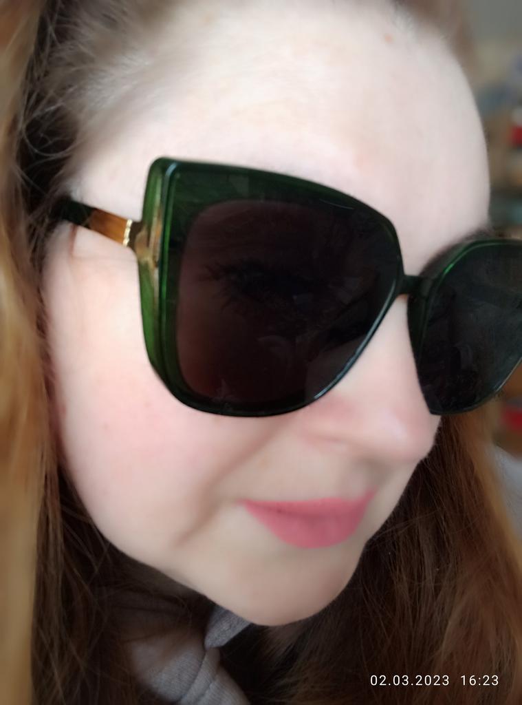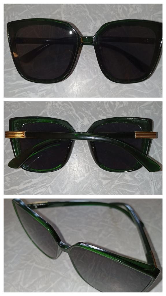 Всех приветствую! Солнце защитные очки UV 400 Форма Cat Eye - прекрасно смотрится на круглом лице . У продавца 8 расцветок на выбор - у меня в любимой зелёной оправе . Очки бюджетные,но выполненны очень качественно. На лице сидят идеально, сегодня ходила в них целый день - стекла не искажают реальность, одним словом понравились! Думаю заказать в другом цвете ! К покупке рекомендую!