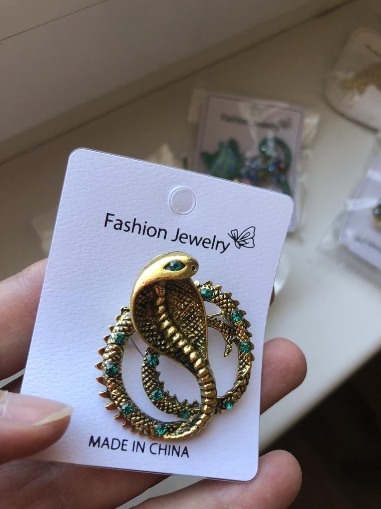 Получила заказ, в сборной посылке. Коброчка шикааарная, достойно смотрится, не маленькая! Брошь увесистая, не лёгкая, подойдёт для лацкана жакета, плотной куртки, или пальто, но не для лёгких тканей, будет провисать. Благодарю продавца, и Джум!🤝