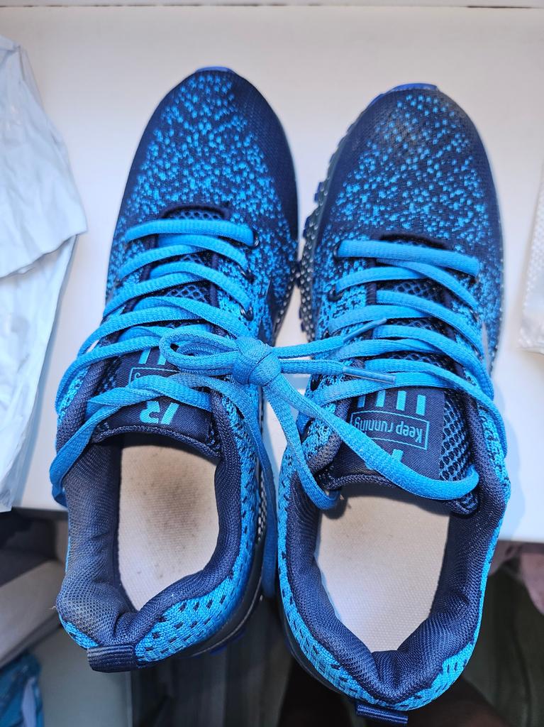 Мои кроссовки, кто то уже носил или мерил ну ооочень грязными ногами!( я заказывала 38, пришёл 40, при этом они совсем немного велики, похоже размерная сетка не соответствует размера на 1.5 - 2, или пришили не тот размер, поэтому мерили!? Текстиль тонкий, задник и стелька твердоваты, пожалели паралон ( проклеяны не аккуратно! Когда чистые смотрятся как на фото!
