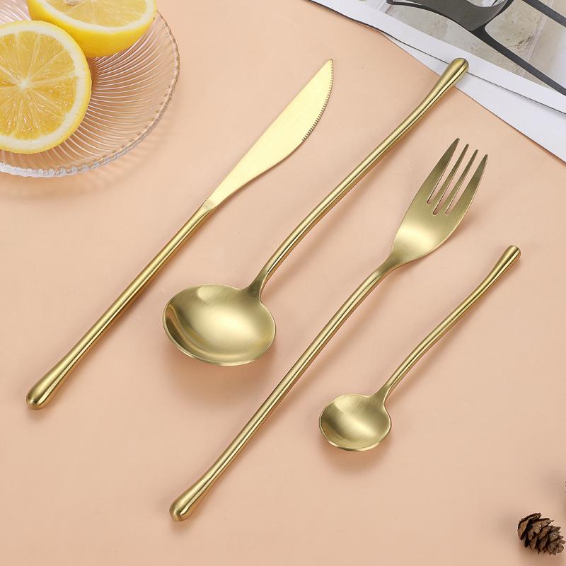 4 шт. золотой набор столовых приборов из нержавеющей стали 304, набор столовых приборов, матовая винтажная посуда для вечеринок, вилка, нож для стейка, кофейная ложка, столовое серебро