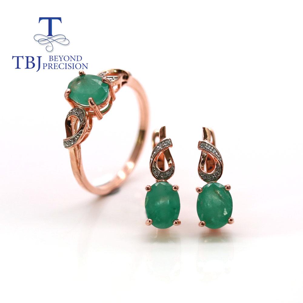 Ювелирный комплект из натурального изумруда, кольцо с зеленым изумрудом Замбии, серьги, изысканные украшения, серебро 925 пробы для женщин, хороший подарок