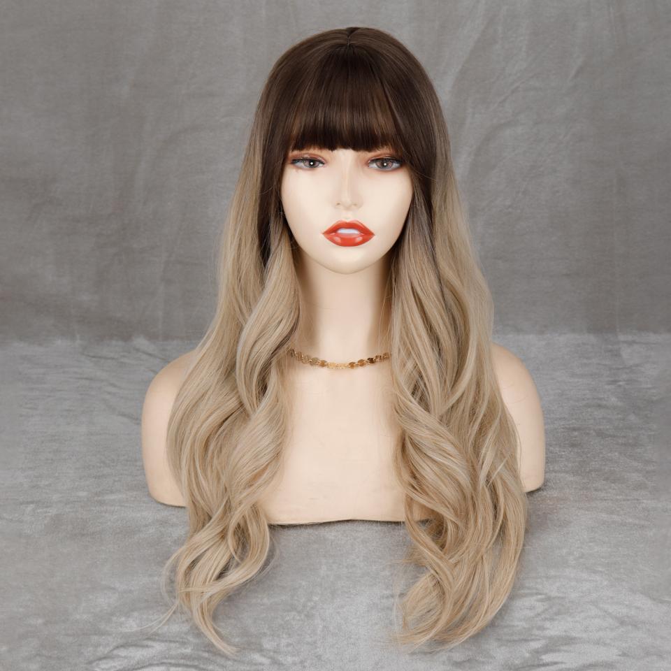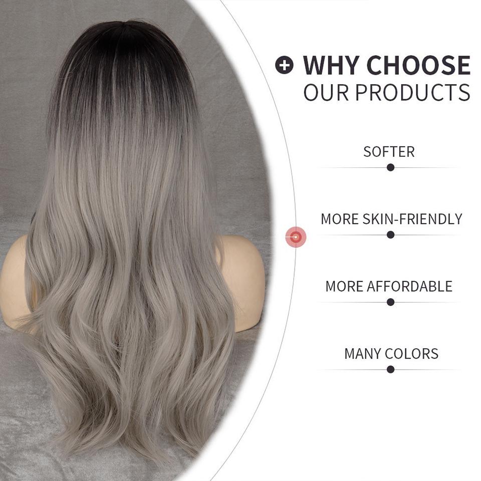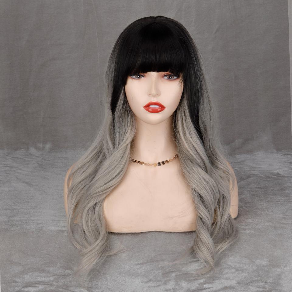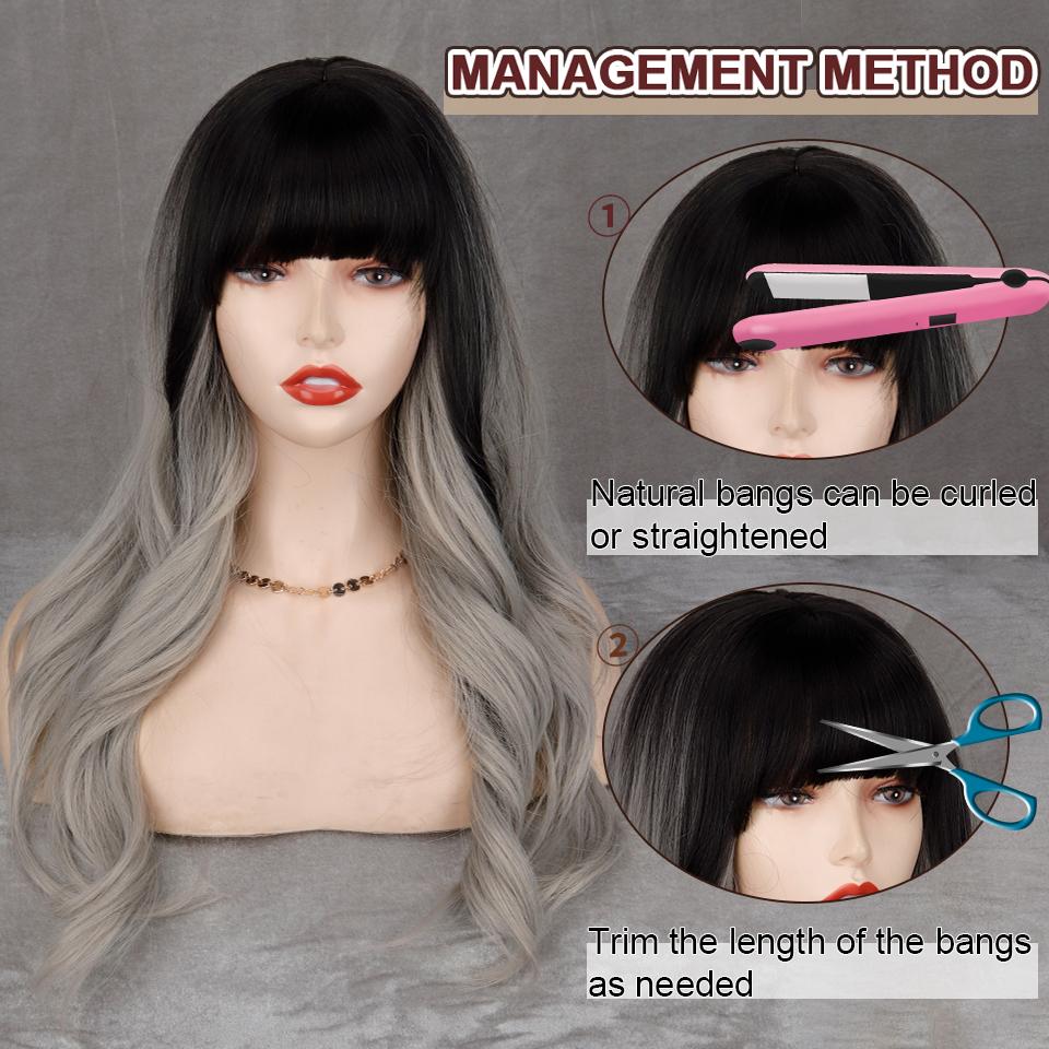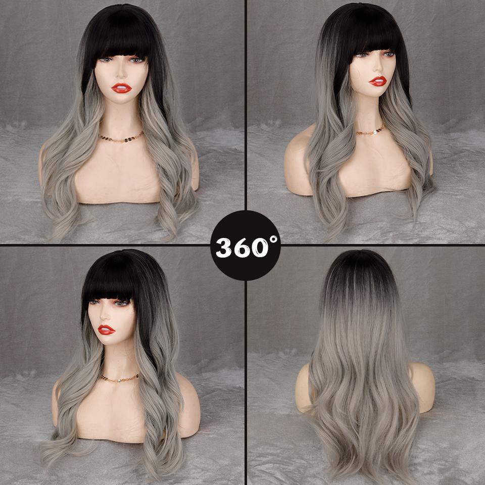 MISSQUEEN Длинный серый парик Ombre с челкой, волнистые парики из синтетического волокна для женщин, повседневная вечеринка