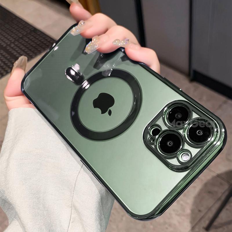 Прозрачный магнитный чехол Magsafe с роскошным покрытием для беспроводной зарядки для iPhone 15 14 13 12 11 Pro Max X XR XS 7 8 Plus SE3, мягкий силиконовый чехол