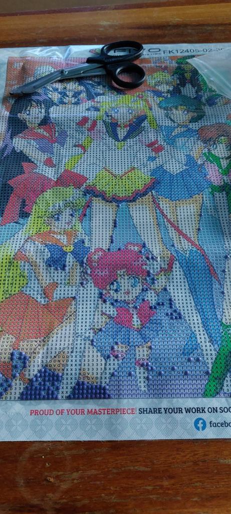 Картина прекрасная! Все хорошо пропечатано, клей вроде хороший. Сначала слегка помятая, но немного полежит и будет идеально. В комплекте 25 цветов стразиков, 2 чаши, 2 палочки лля прикрепления и большой пласт сухого клея. Думаю, готовая картина будет выглядеть очень хорошо.