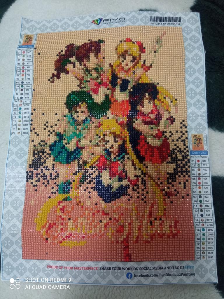 К сожалению доставка шла аж 2 месяца, так еще и оттенок перепутали, на картинке не должно было быть черных блестяшек, но из зачем-то положили и тем самым рисунок был испорчен( Ну вот просто посмотрите что должно было быть и что получилось(