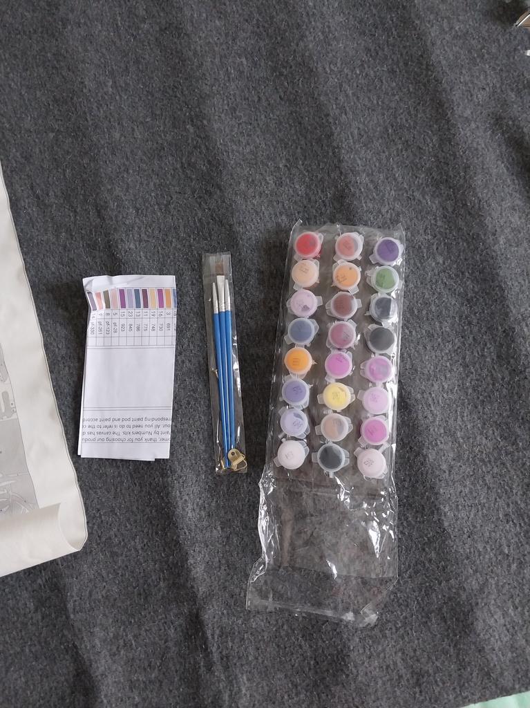 Наконец-то получила картину . В наборе краски с кисточками. Буду пробовать себя в роли художника . Очень приятно получить такой подарок 🎁 за 1 рубль.