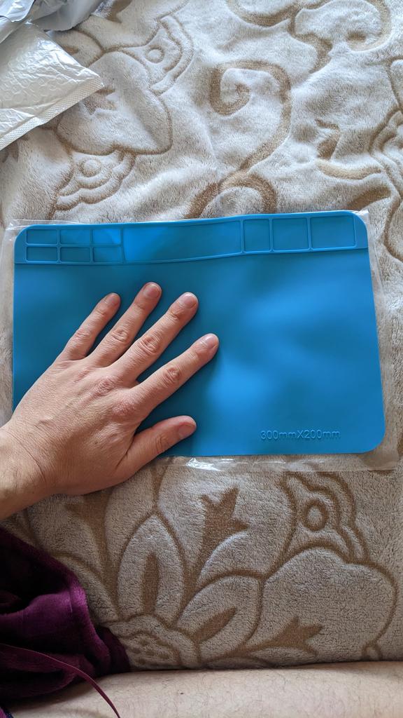 Коврик супер. Силиконовый, очень мягкий, гибкий, не скользит на столе. 20х30 см. Покупкой доволен. Рекомендую...