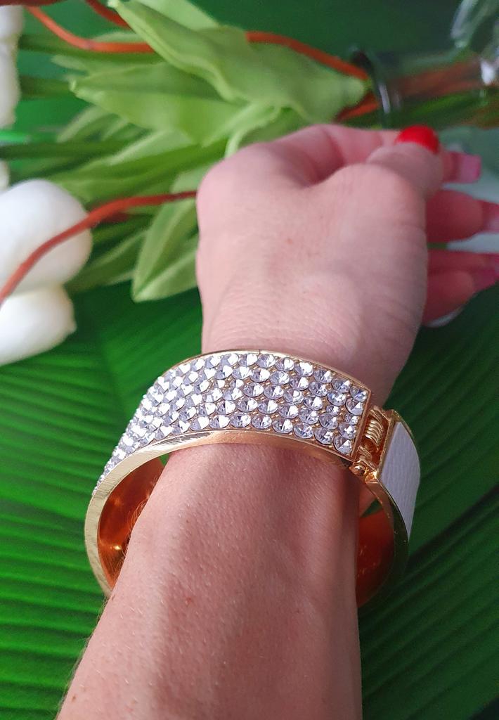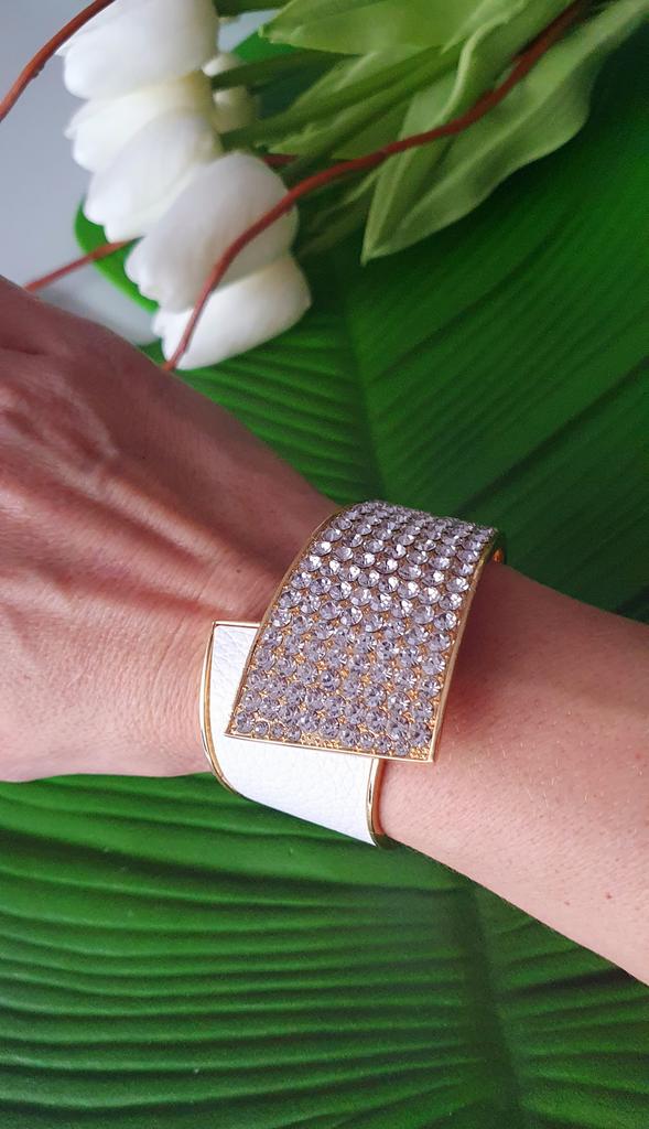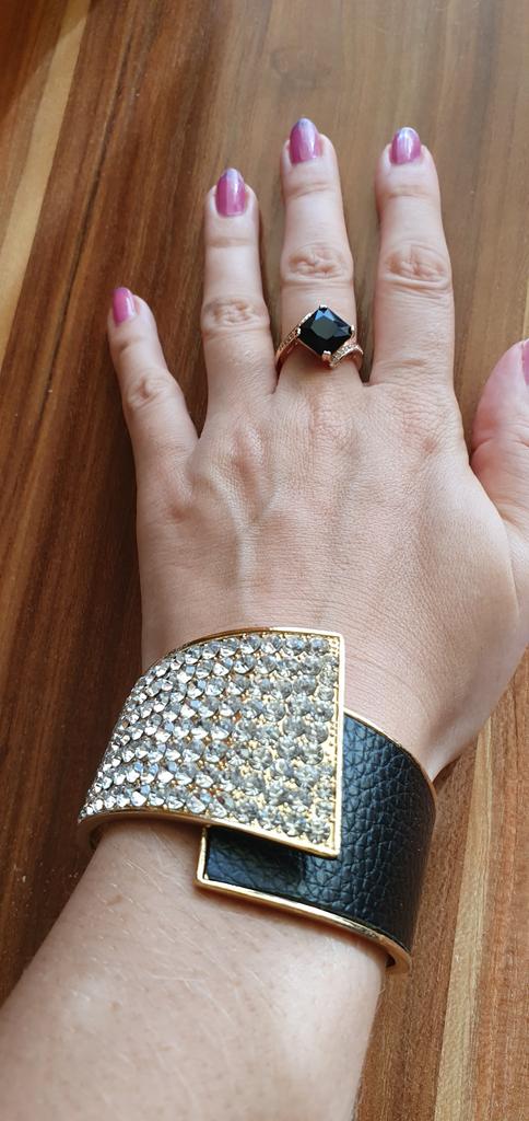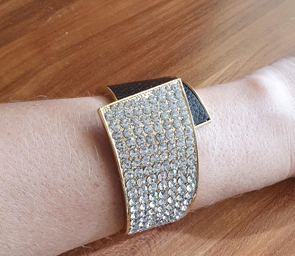 👑Браслет роскошен! Всё камни на месте, блестит, переливается, отлично держится на запястье. Меня привлекло контрастное сочетание цветов, хотя у продавца есть другие цвета: белый с золотом, розовый с золотом. В моем варианте он не слишком приторно гламурный, за счёт присутствия черной тесненой кожи. 😇Очень рада обновке, благодарю Joomy у меня собралась приличная коллекция стильной и недорогой бижутерии! Спасибо любимый Joom!😍👘👏