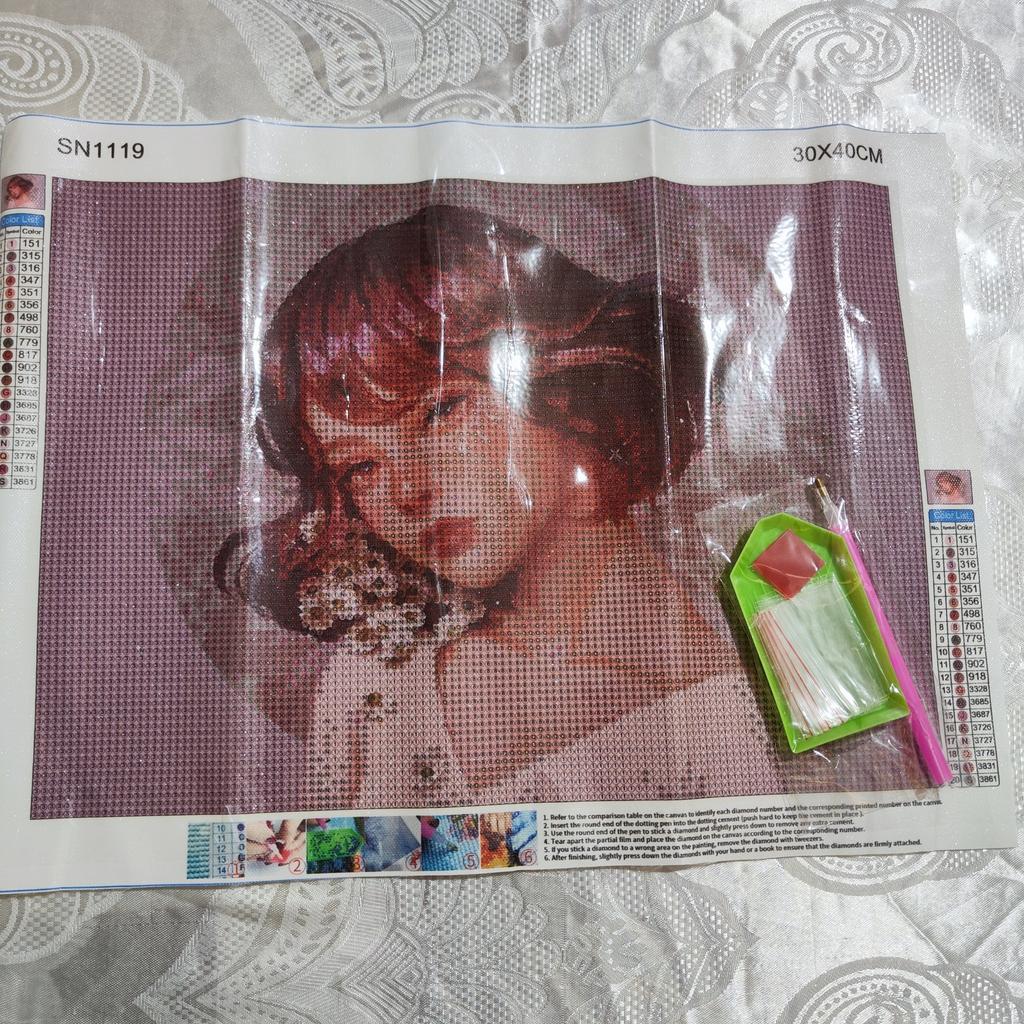 Алмазная выкладка "Волшебство" без подрамника В комплект входит: 🔸Полотно с клеевой основой, пронумерованными ячейками и инструкцией на английском языке. 🔸Стилус, 🔸 Сухой клей для стилуса, 🔸Лоток для страз, 🔸 Комплект цветных страз. 🔸5 зип-пакетиков для страз. Размер 30х40 см. Была скручена в рулон, но складок нет. Необыкновенная красота! Очень довольна приобретением! 😍 Доставлена в почтовое отделение за 1,5 месяца живым треком в сборной посылке. Товар и продавца рекомендую 👍